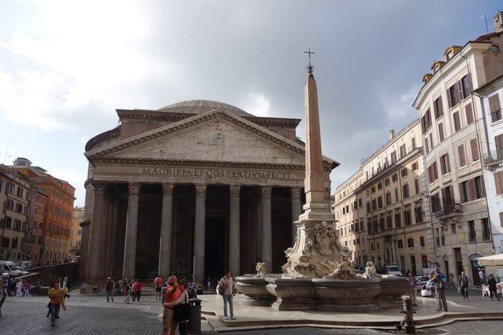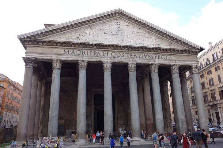 在西元118~125年同樣由羅馬皇帝哈德良下令重建,當時大膽採用了創新的手法,正面不但有高聳的希臘式圓柱,而神殿的圓形球體外觀,進入之後抬頭一望,便能感受到無比的震撼。