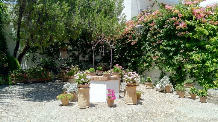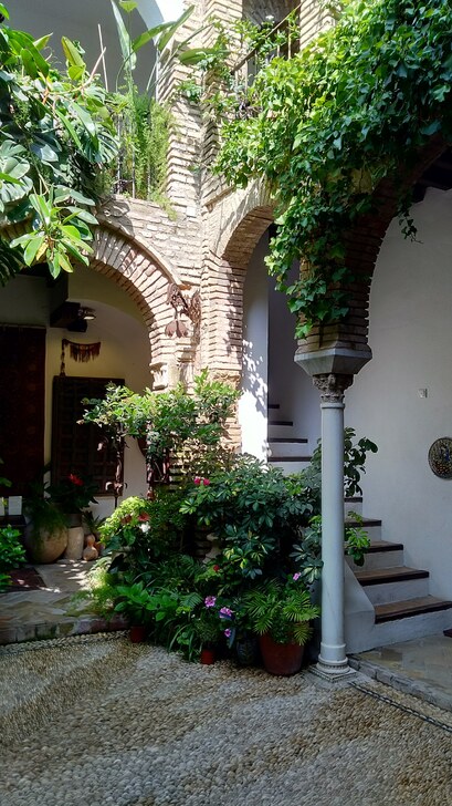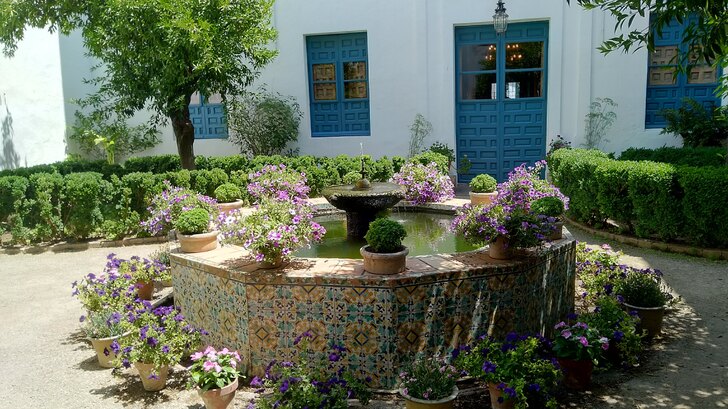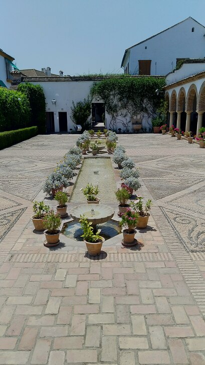 由於西班牙南部當地的氣候炎熱乾燥,哥多華當地居民因地制宜,發展出特有的房屋形式,房屋的中心圍繞著一個庭院(西班牙語稱為patio),既提供光線,也能通風,而庭院的中間,通常會設置一個噴泉,另有一個收集雨水用的井。