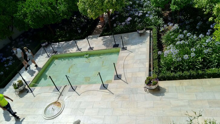 當然,中庭的植栽配置也很到位,水聲與綠意,讓人明顯感受到一絲的涼意,忘卻了哥多華的酷熱。