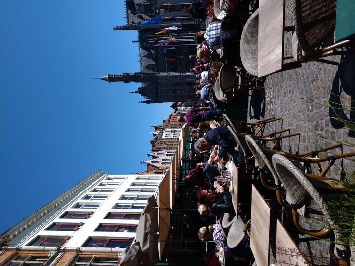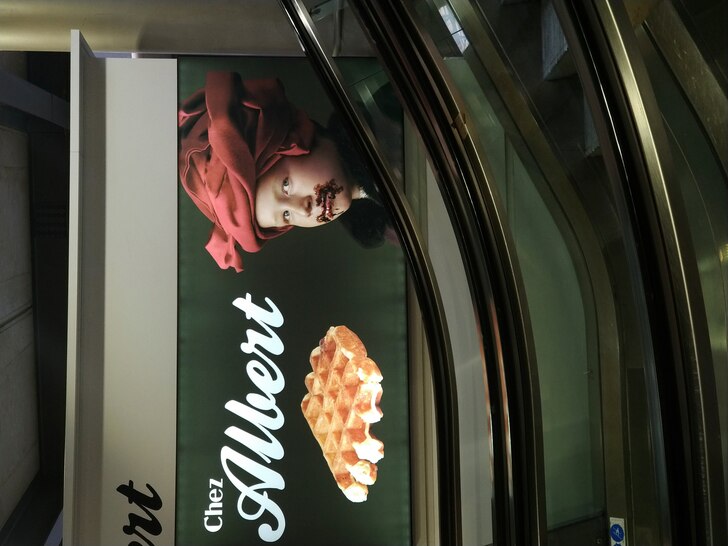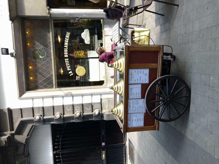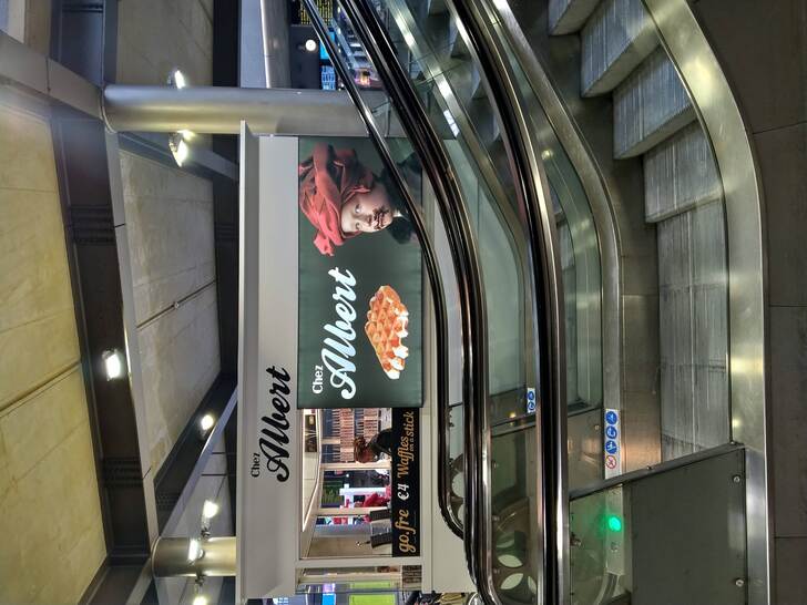 當時我在安特衛普中央車站有看到Chez Albert廣告,男孩吃的滿嘴都是巧克力,留下深刻印象,不過沒有去。反而,我在布魯塞爾購物長廊附近,在廣場旁隨意找了一家露天餐廳,坐下來就點了這款鬆餅。