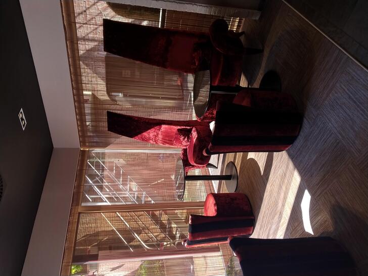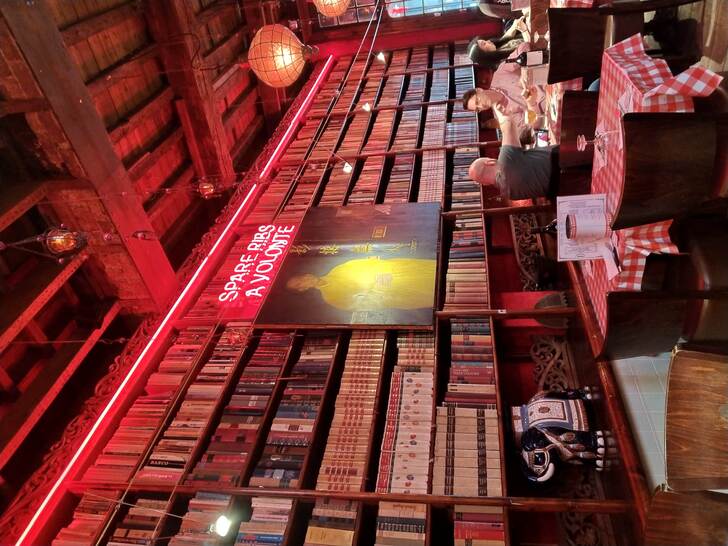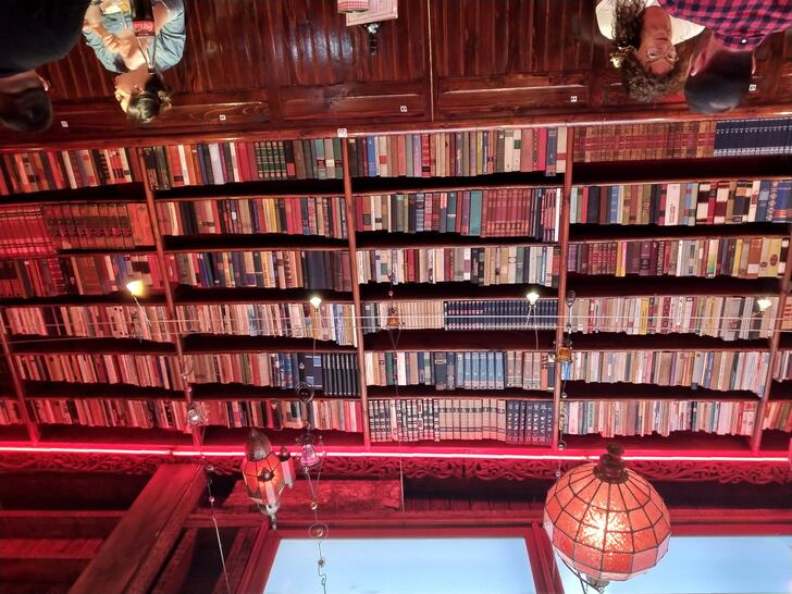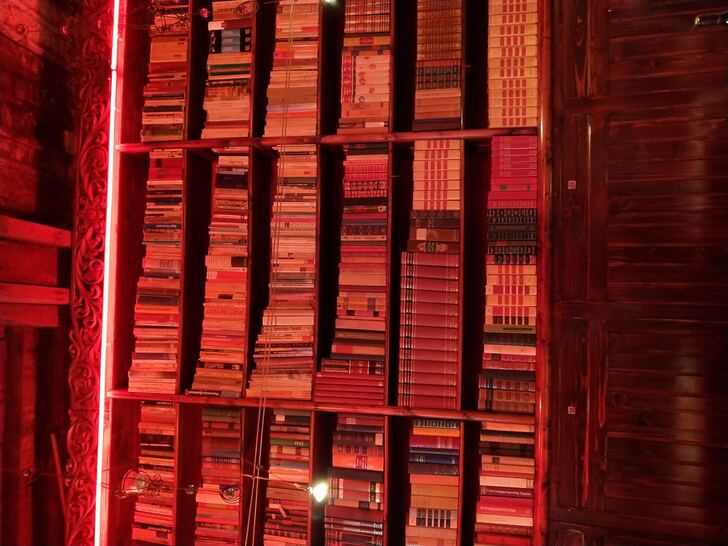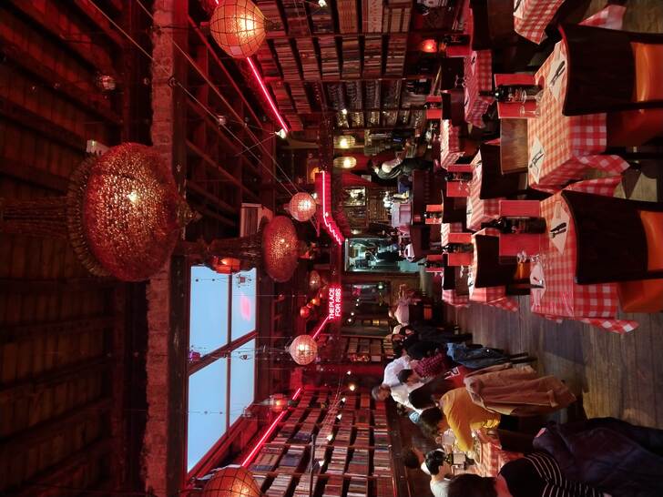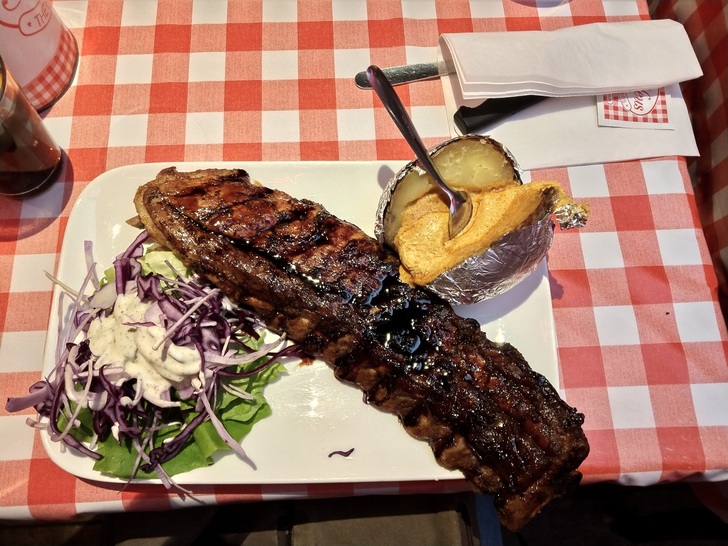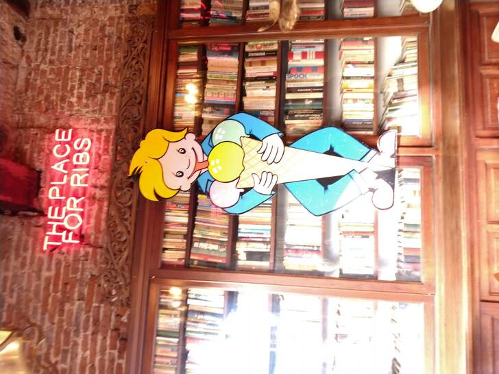 這家名為Amadeo的餐廳,用餐區被書牆所包圍,打上燈後,整個紅通通的;豬肋排的體積十分驚人,還超出盤子了呢,肉很多汁,醬汁會讓人忍不住一口接一口,而馬鈴薯也是一絕。