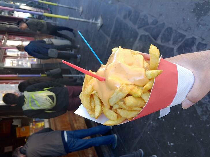 除了在比利時吃得到,其實炸薯條是荷蘭的知名美食,不管走到那裡都看得到專賣店,我記得在荷蘭那幾天,不管點什麼來吃,都會附上大量、像是不用錢一樣的薯條,可以沾美乃滋或番茄醬來吃,但都是吃不完。