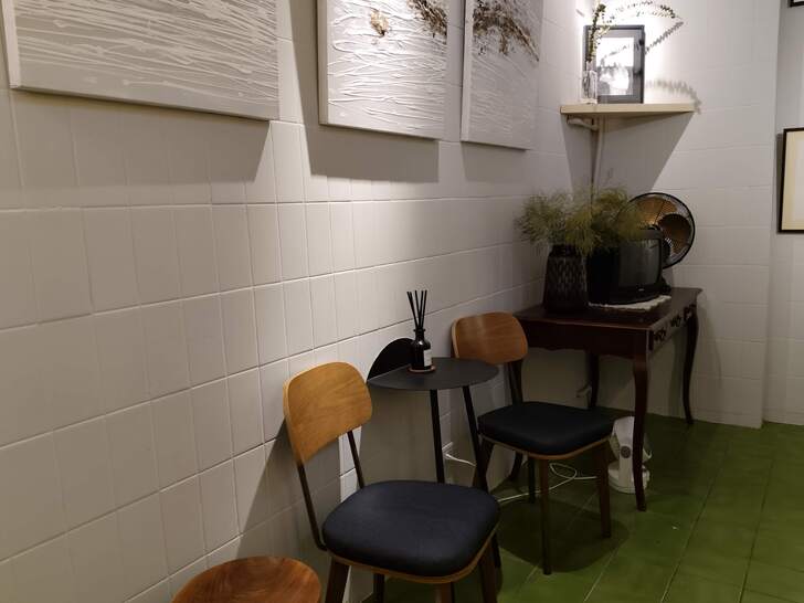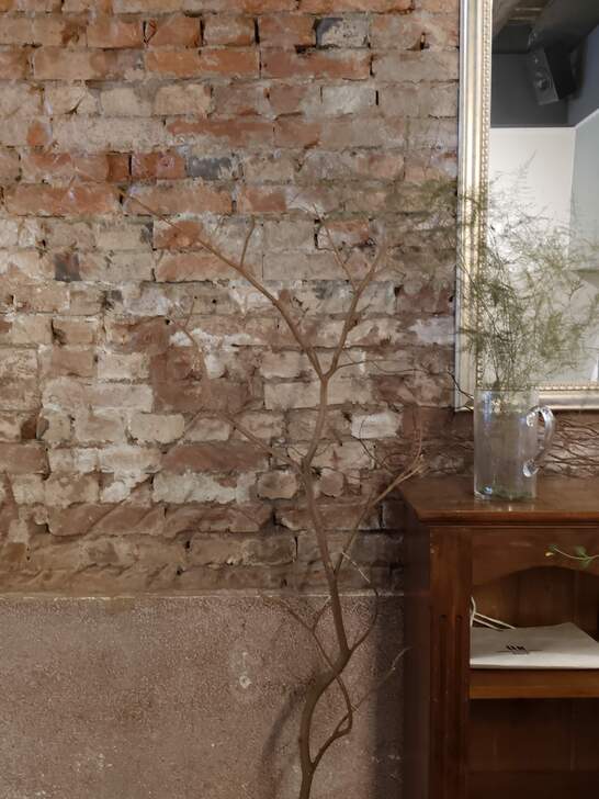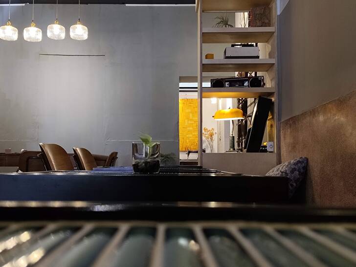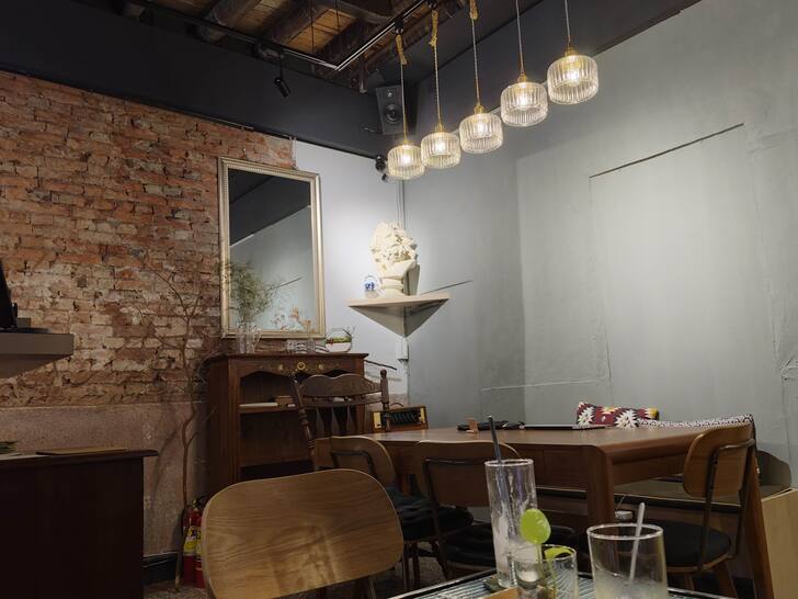 拍完一輪後回到座位,好奇打開手機上的Google地圖,看看新舊店家有什麼不同之處。場地雖是換了新的主人,不過仍保留了原有老宅的元素,像是天花板的木頭,大片磚牆沒有動,前店家留下的一些東西也有被拿來再利用,整個空間給人復古又低調的感覺。