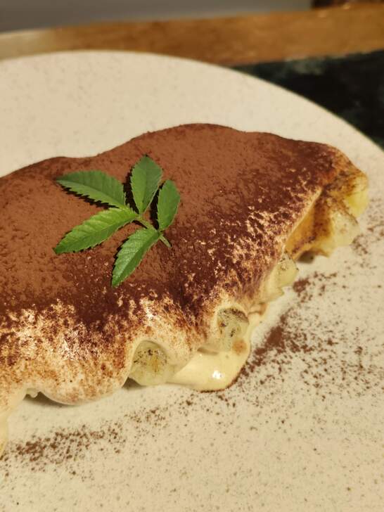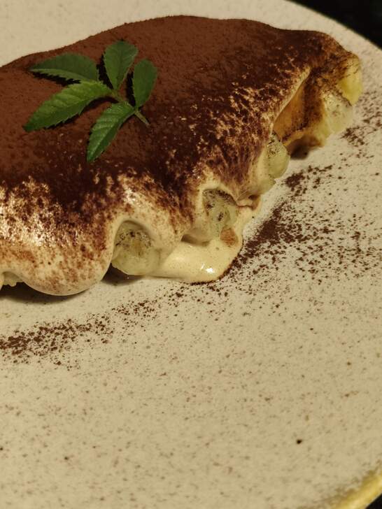 果然這款可朗芙帶有鬆餅的柔軟口感及可頌的酥脆,搭配上面的提拉米蘇,層次很豐富,確實蠻特別的。