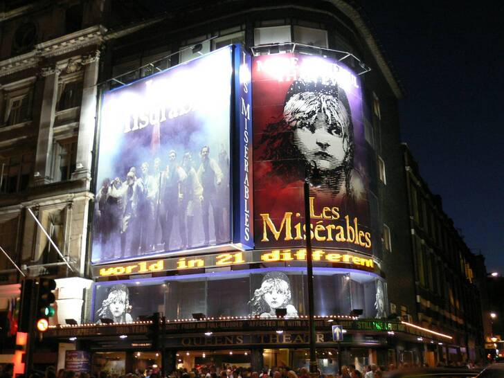 這回幸運之神站在我這邊。在廣場附近繞了半天,總算是找到半價票亭,我和同行友人本來想看《歌劇魅影》,但票亭只剩要價66鎊的票,實在是太過驚人,剛好《悲慘世界》(Les Misérables)有比較”親民”的半價票—23.75鎊,於是就決定這部啦!