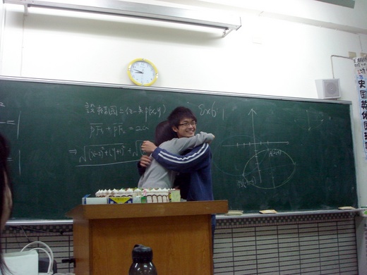 我想她感動的原因,是因為一個班正準備為甄試和大考作準備,一個班則需要嗷嗷進補,兩班對她而言都非常重要。看到我們百忙中製造的驚喜,是感動、也是心疼。而我便是在她情緒最高昂、淚水即將潰堤之際,獻上我的禮物,她才會見到我就像見到恩人一樣,開心感動的抱著我。
