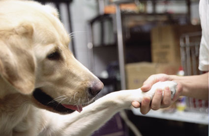 首先,訓練師先教國瑞套導盲鞍的方法。「導盲鞍是導盲犬值勤的關鍵,套上它表示『工作』,卸下它表示『下班』。它的功用還不止於此,藉由它,主人可以知道導盲犬現在看哪裏、做什麼,是失望還是害怕;同樣的,導盲犬也可以經由主人握導盲鞍的輕重鬆緊,了解他目前的心情是高興,還是難過;總之,雙方都藉導盲鞍感覺彼此。」「Forward!」他下指令。Forward 是前進的意思,Ohara 聽的是英文,英文是牠的母語,國瑞英文程度很好,不但不構成問題,訓練師還說,「以後有些命令你可以自行訓練。」
