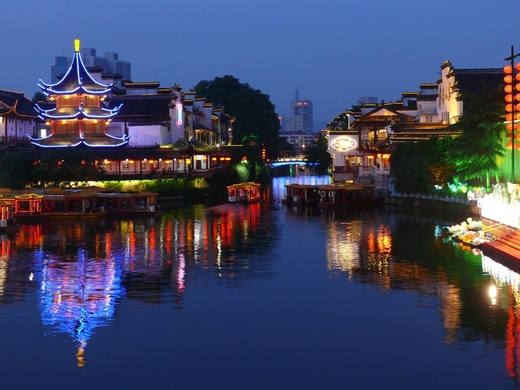 隋、唐時期秦淮河雖然沒落,卻吸引了大批的詩人前來南京懷古、憑弔,並留下輝煌燦爛的詩篇。李白的《長干行》,劉禹錫的《烏衣巷》,杜牧的《秦淮夜泊》……描寫、感嘆的正是南京。
