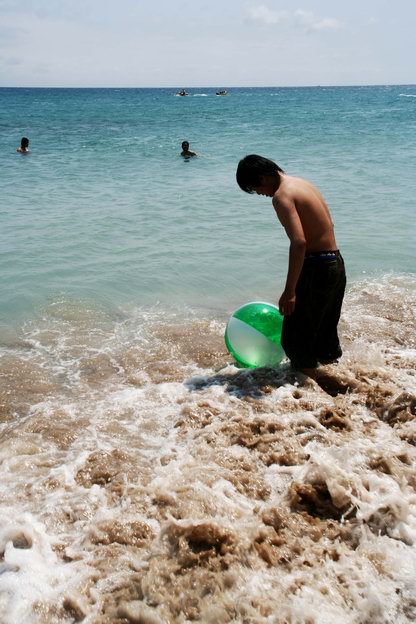 水從雙足底下竄上來,讓海風拍打在身上,眼裡偷瞧著遠遠從沙灘上