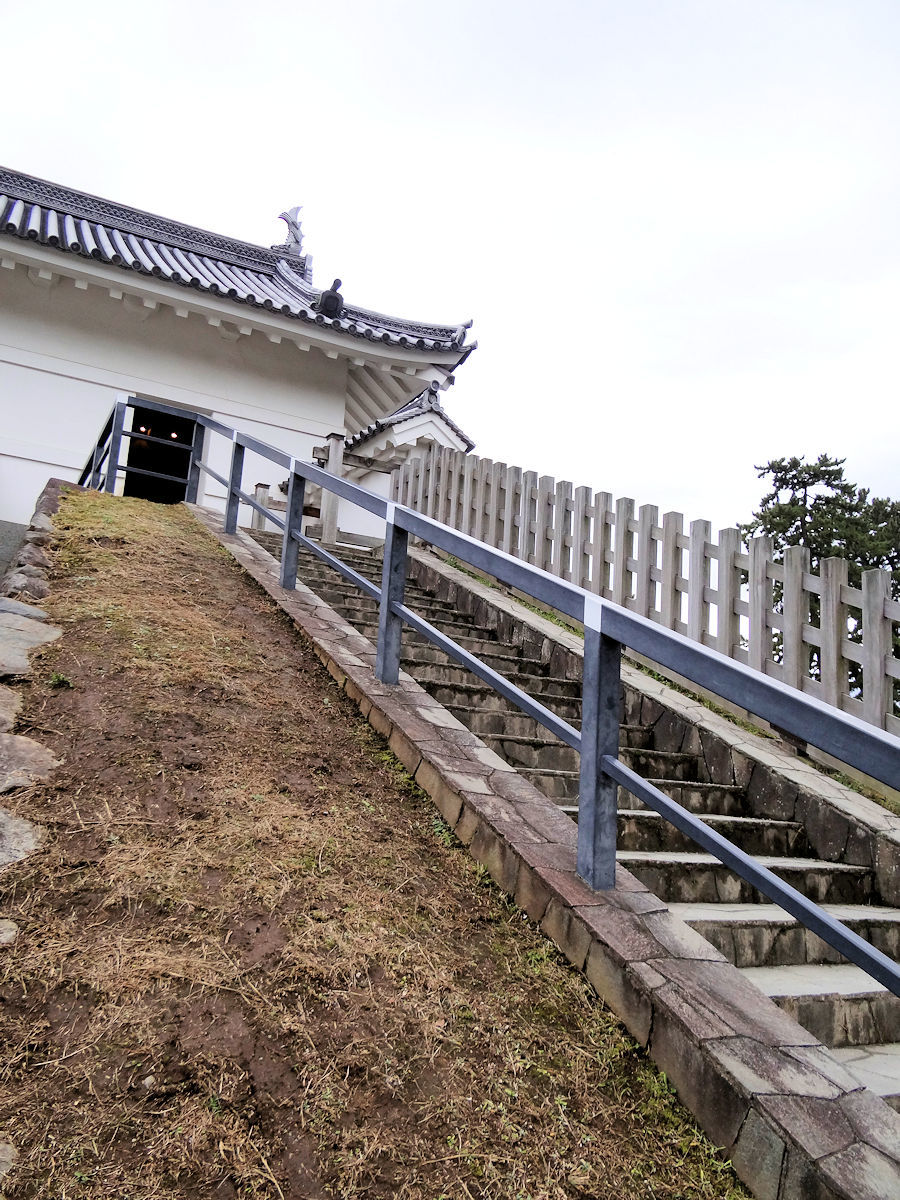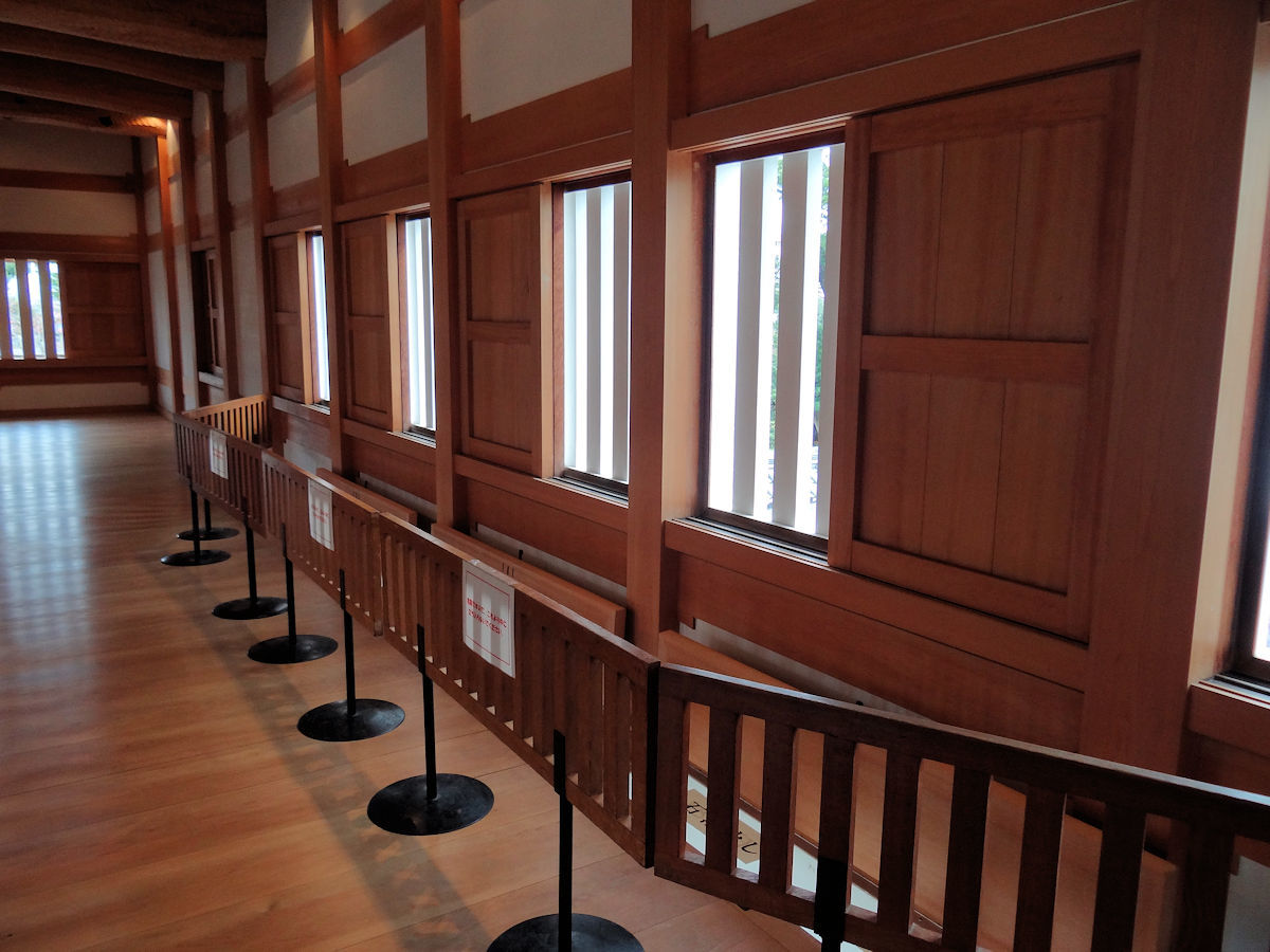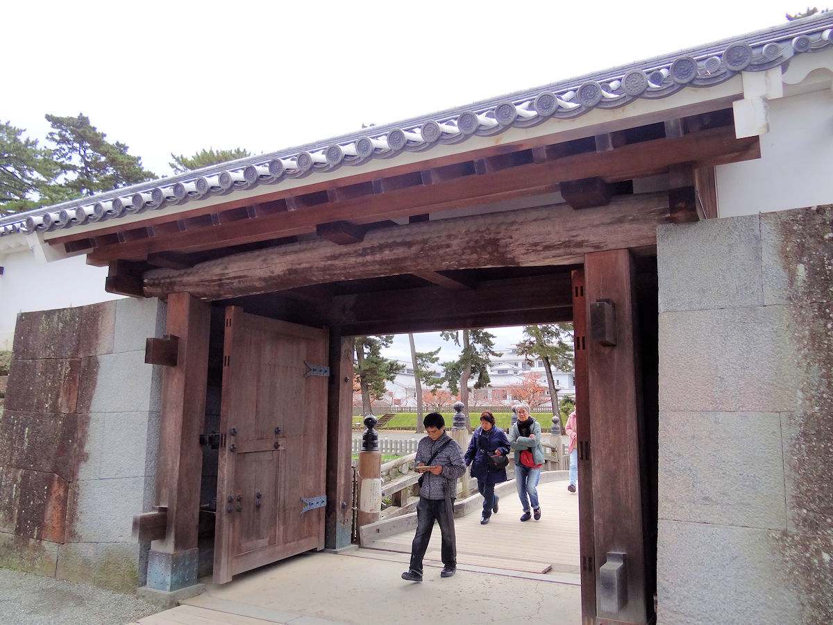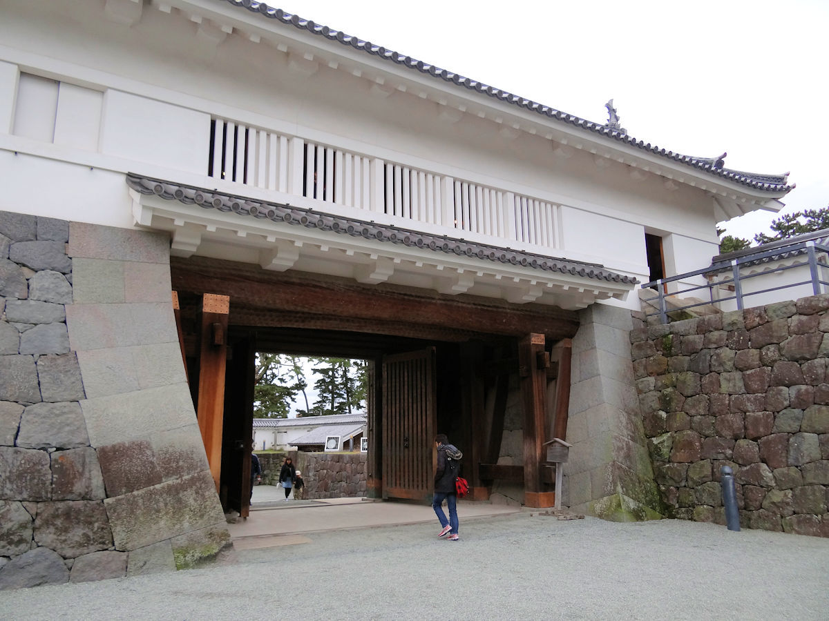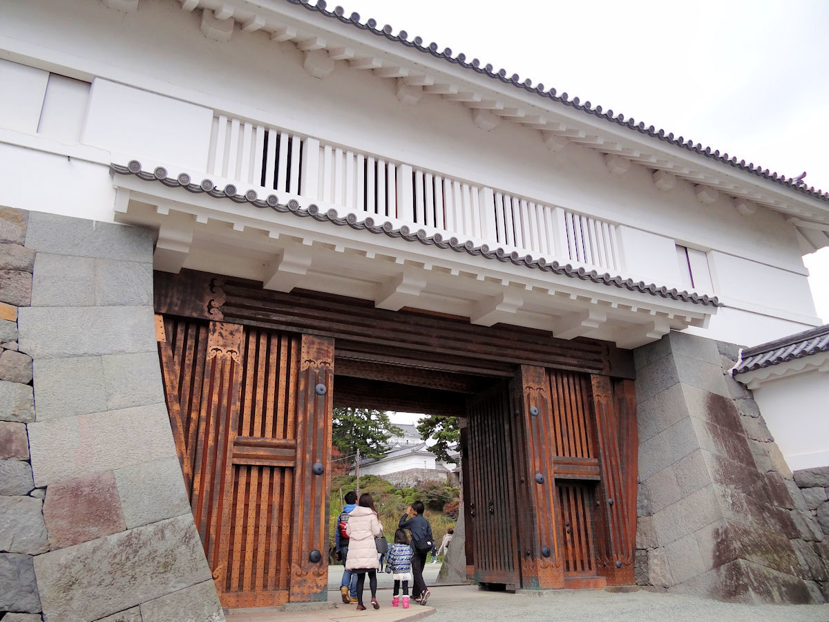 銅門則是把守護城河內側甕城的關口,名稱來自門板上的銅片裝飾。銅門本身是遊覽必經之地,隨時都看得到;銅門上方,供防守者儲存武器彈藥,投擲矢石的倉房,卻只逢週休假日開放。說不得,這天剛好是日本國定假日,上去拍了幾張照片,後面會看到。