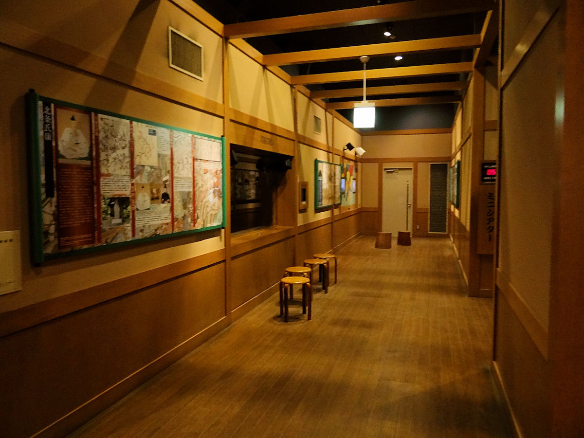 由小田原城天守閣出常盤木門,階梯下便是歷史見聞館。館中介紹小田原城歷史,特別是後北条氏五代事蹟,另有江戶時代街道建物的模型或仿真展示。不過先前在天守閣和常盤木門武士館已然看過不少,邊際效益遞減,隨手拍幾張照片便離開。