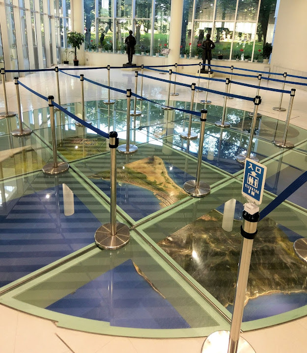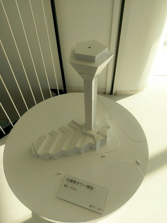 右圖是電梯間,地下模型為五稜郭建設當時的箱館;遠處兩尊雕像,分別是武田斐三郎(左)和榎本武揚(右)。榎本武揚是留學荷蘭的幕末海軍副総裁,幕府倒台後逃往蝦夷(北海道)建立共和國,抗拒新政府。箱館戦争失敗投降,仍在明治政府歷任要職。