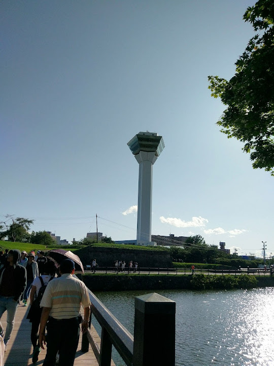 小子們清晨搭乘虎航班機,午前抵達位於北海道南端的函館,出關不久,就該填肚子了。忍著飢腸轆轆,先前往第一站「五稜郭公園」,當地代表性景點之一。下車先祭五臟廟,飯後進公園胡亂走上兩圈,再登上護城河外的五稜郭塔望遠。