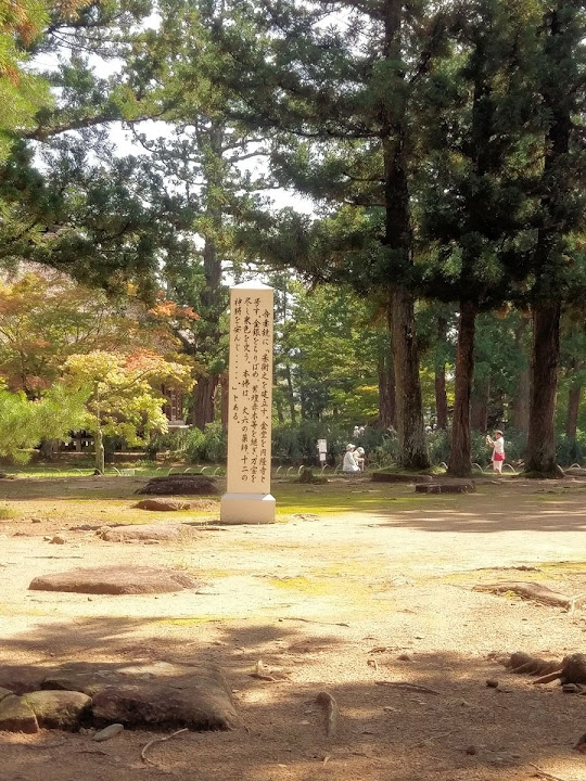 寺院幾經戰亂,大部燒燬,僅淨土庭園及平安時期建造的修道院完好如初。近代少數建築次第修復,但大多仍只有「XX跡」的柱石為標誌。兒子看得很悶,評曰「什麼都沒有」。然而或許這才是重點。