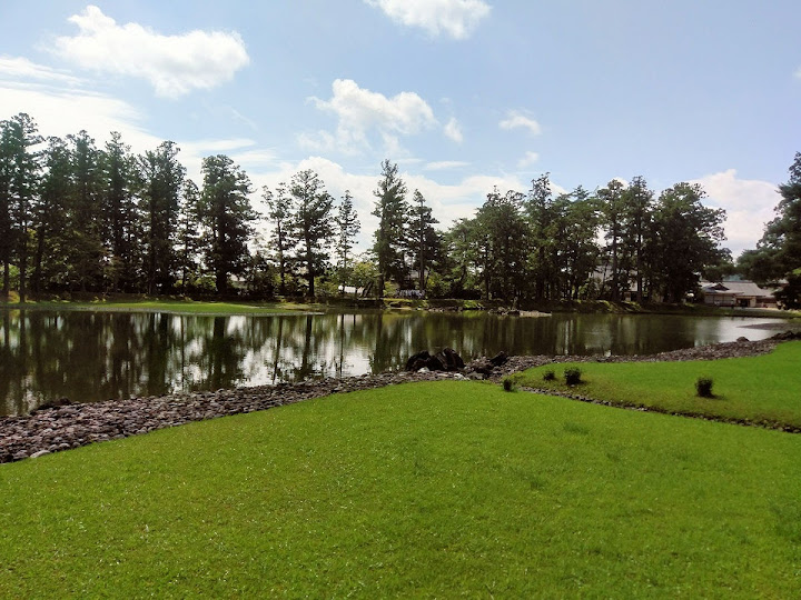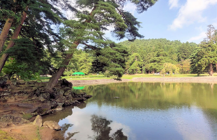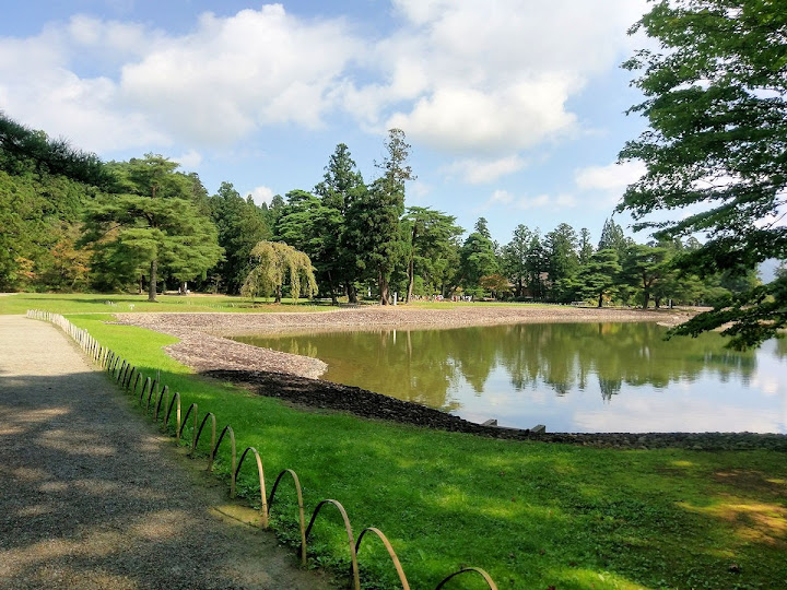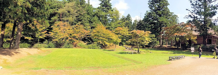 2011年,毛越寺列入世界文化遺產,重點便在包含大泉池(下圖)的淨土庭園。所謂淨土,係佛經中廣闊無垠的美好境界,概念類似基督教的天國。放眼望去一派自然寧靜,或許便是人間淨土的呈現。倘若櫛比鱗次車水馬龍──那大概是另一種人的樂土罷!