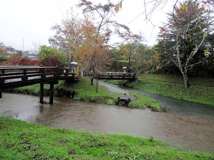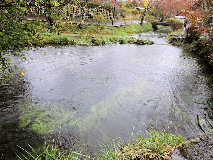 忍野八海在富士山駅與山中湖之間,有巴士可到。本來懷疑巴士會不會停駛,那就真的得鳴金收兵。好在狂瀉的大雨中,巴士依然姍姍進站。忍野村路程不遠,一會兒便到。然而班次不多,回頭車約一小時後。景點離站牌幾百米,八海當中的七個,大概來得及走完(實際巡到六個)。落單的出口池稍遠,晴天健行不妨,後來傾盆大雨實在凍未條,只好算了。雖說雨大,照片卻是不少,本篇先看八海,途中拐彎到村裡淺間神社那段,下期待續。