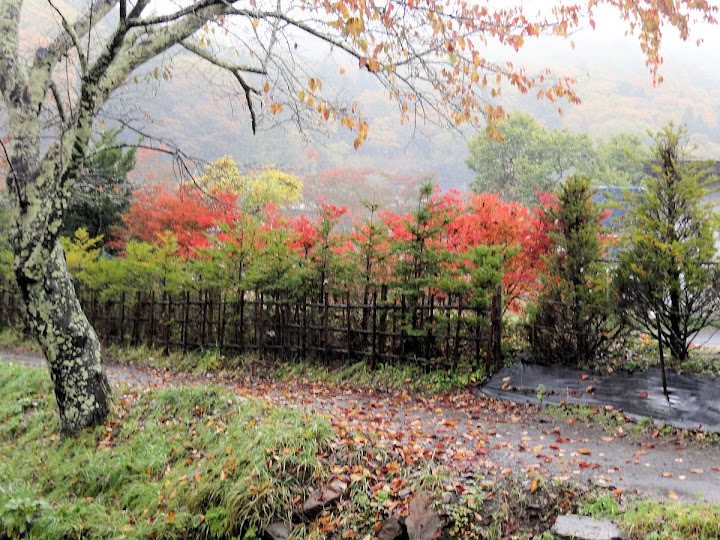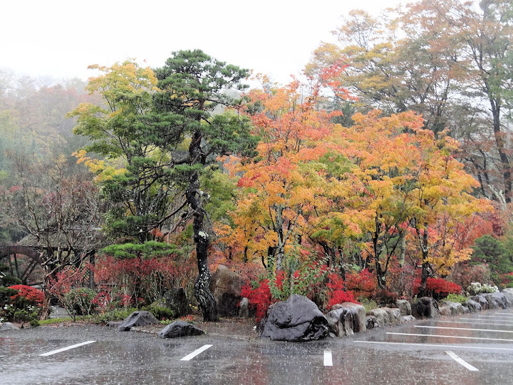 為了彌補前次造訪河口湖遭遇大雪之憾,這回提前個把月舊地重遊。沒想到人一做計劃,上帝就發笑,竟然又颳一場颱風。透早起床大雨滂沱,便知今日沒啥搞頭,卻仍然拿訂好的車票鼓勇前進。在火車上不住盤算,上那兒去好呢?有前一天諏訪湖經驗,河口湖、山中湖遊船纜車八成統統停駛,連腳踏車也沒得騎。最後決定先到忍野八海,看天色再往山中湖或河口湖。倘若形勢不妙,也只能打退堂鼓了。