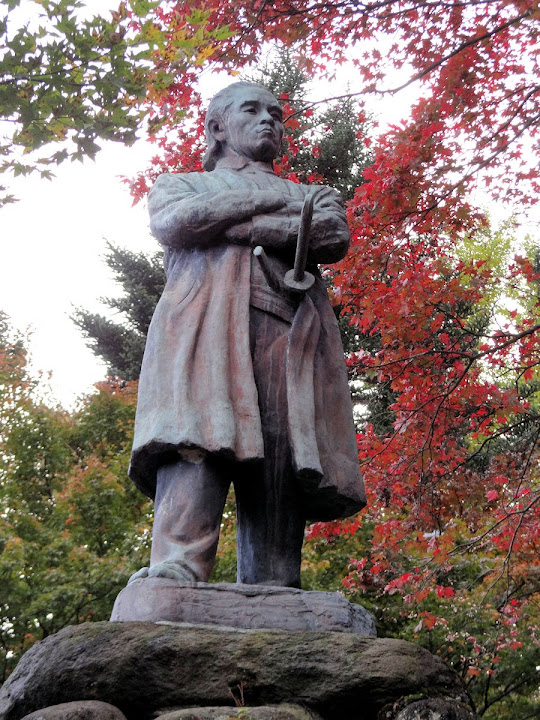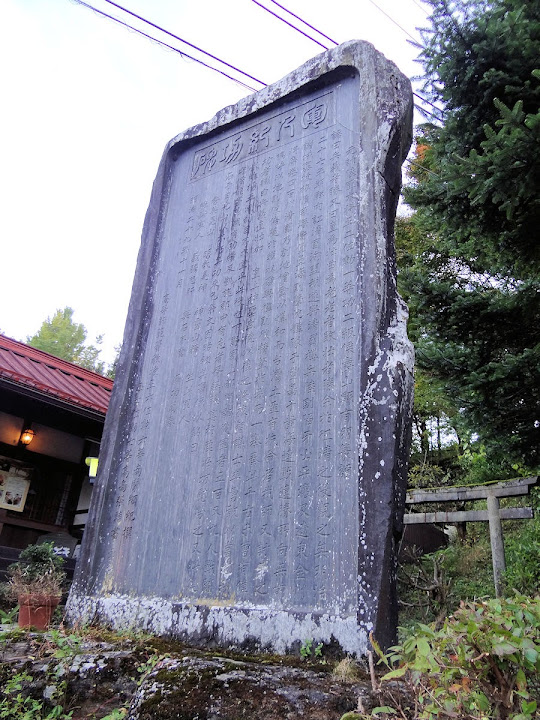 板垣退助事蹟在「日光健行‧東北新幹線」文中提及,不再重複。山縣有朋出身長州藩,組建新式陸軍,官拜大將、元帥,兩度出任首相,號稱日本軍國主義之父。碑上文言文講的是時任首相的山縣,以懸殊比數打贏甲午戰爭,大獲褒揚之事。文中提到台灣,寫著「台灣土匪有抗命者我師又討平之」,嗯。