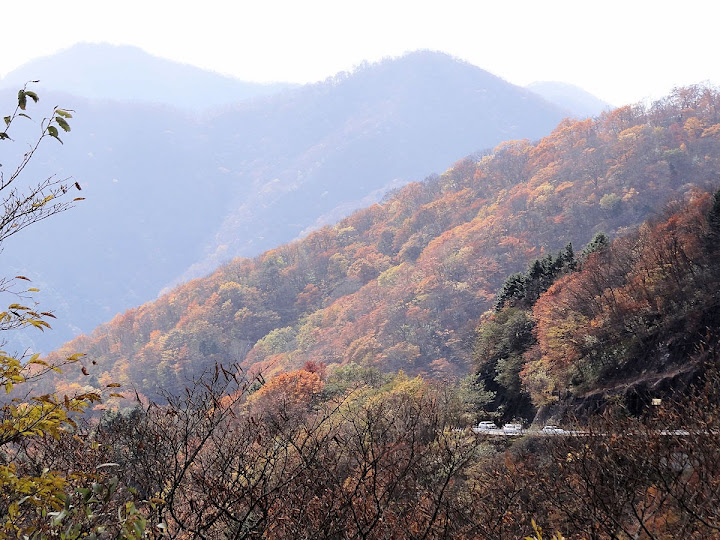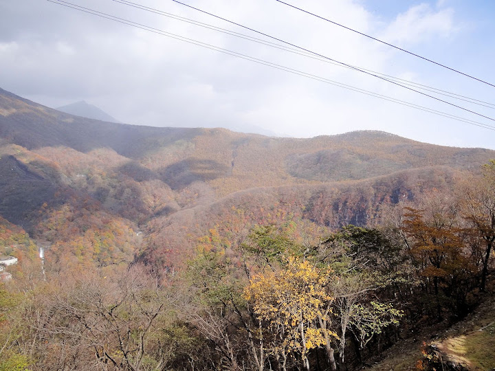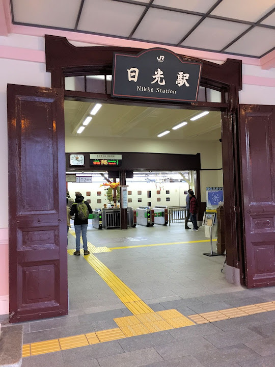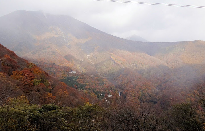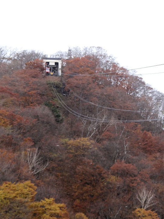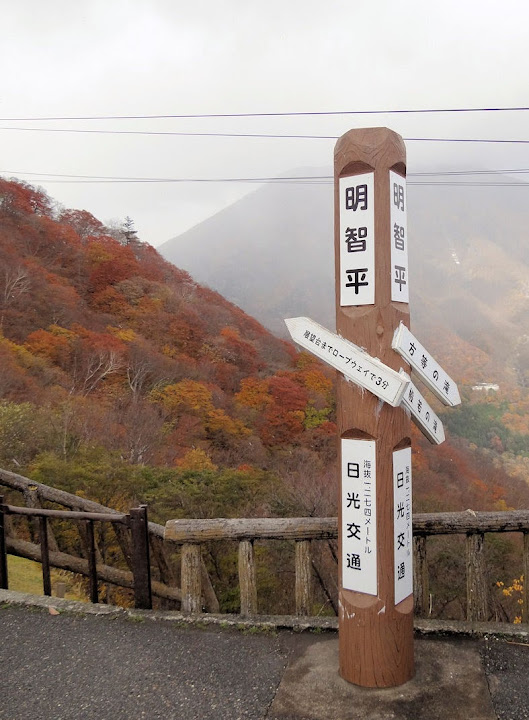 本文先看日光駅(上圖)到明智平沿途風光,時序則不依實際先後排列,部份是下山之後拍的。在明智平糊里糊塗下車(聽不懂日語的結果,只有幾個死老外──包括我,下車),才發現纜車沒得坐。次班車要40分鐘,只好四處閒蹓躂。本來想乾脆步行到中禪寺湖,一則時間差不多,再則中間有一段長隧道,懷疑空氣不會太好,因而決定等車。幸得如此,否則一出隧道便遇上強勁冰旋風,恐怕挨不到地頭。