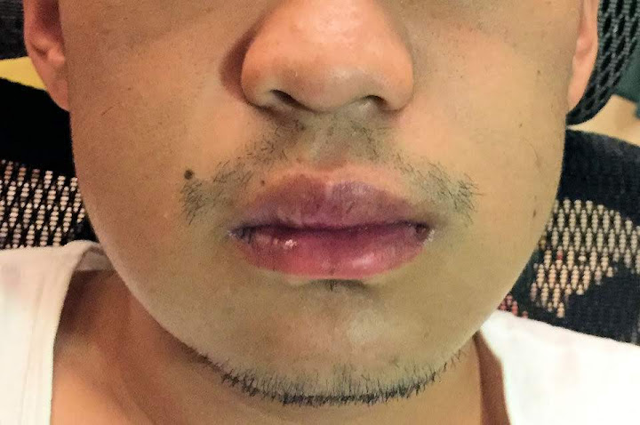 手術次日,拆除引流管,兩頰浮腫,持續冰敷