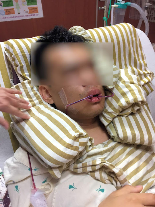 表定手術時間三小時,由於是全身麻醉,在恢復室要待二至三小時。實際上最後推回病房,是將近八小時後。什麼原因不清楚,但第一刀約七、八個病人,都差不多那時候陸續回房,猜想是塞車吧!反正不打緊,順利平安最重要。剛回來時兩頰接上引流管,看不見的地方還有導尿袋,怪可憐的,次日醫師檢視後才拆除。護理師逐一進行口腔清潔,示範同時教導患者如何自己處理。還有冰敷,大約要持續一週左右,也得學著自己做。