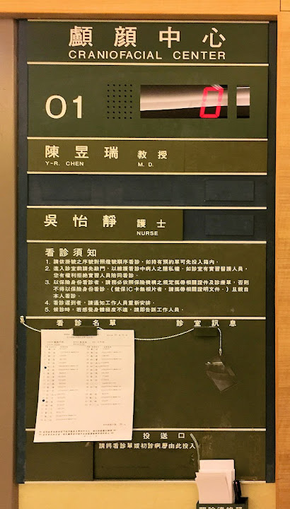 陳教授不僅經驗豐富,待人也十分和藹可親。由於在牙科已經做了詳盡檢查,陳教授進行必要檢視後,便安排手術日期。沒想到一傢伙排到一年後。主要考量復原期約兩三個月,安排在暑假開始,比較不影響課業。再則當時不滿廿歲,恐怕仍然在發育,會影響手術成果。後來手術前一個多月回診,柯醫師也安排George到內分泌科檢查,確認生長激素沒有偏高(因為這孩子實在長得大隻),才安心動手術。
