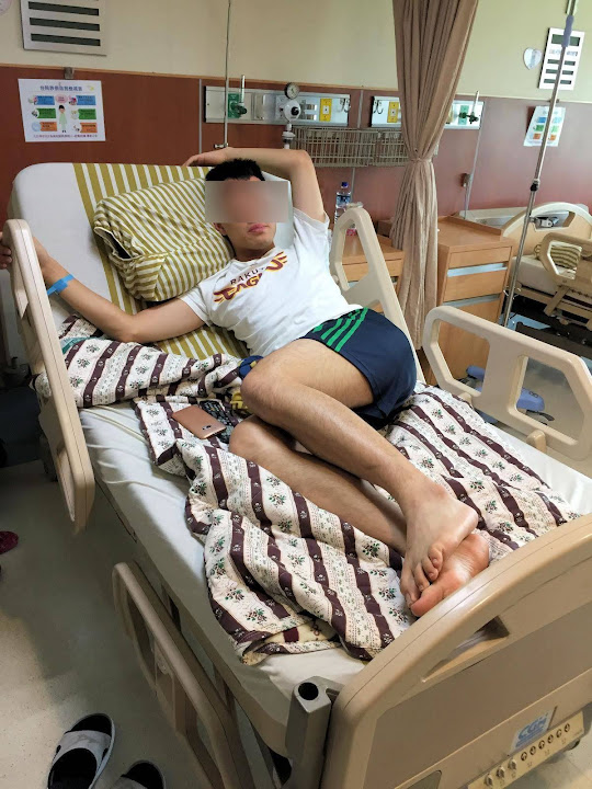 左:術前等候檢查,病床顯然不夠長。右:術後剛回病房