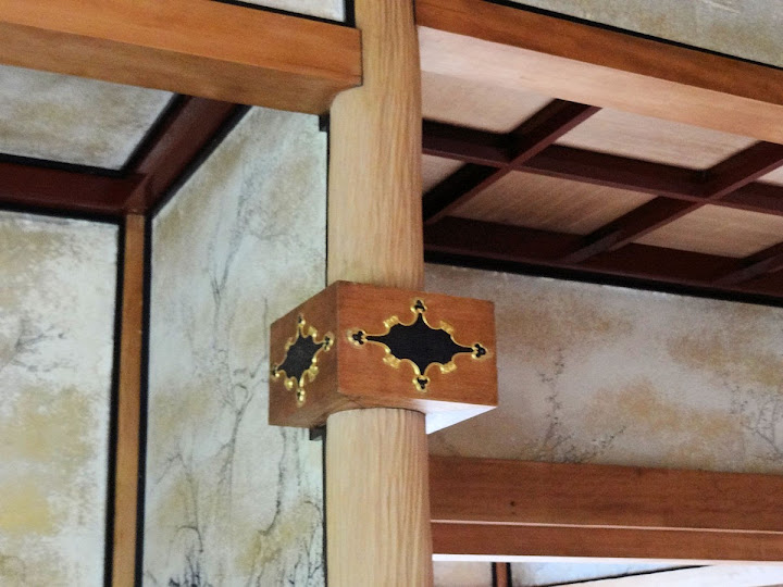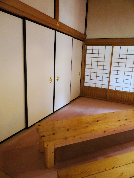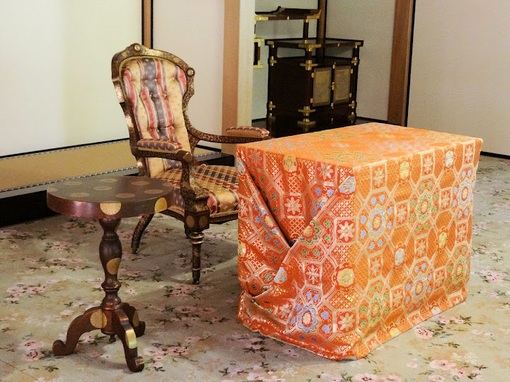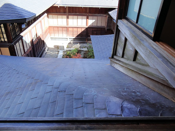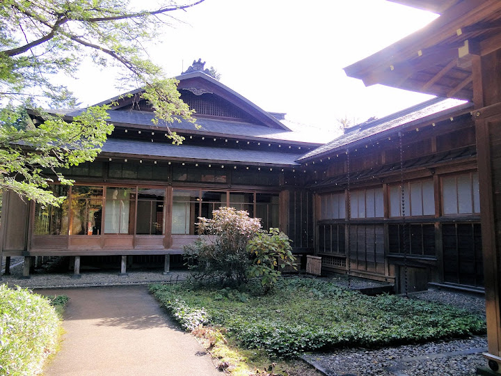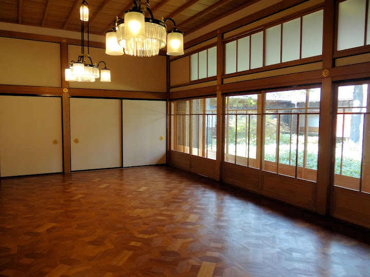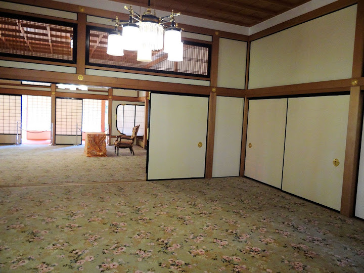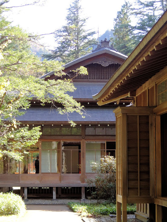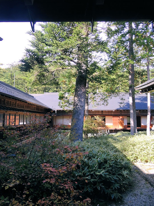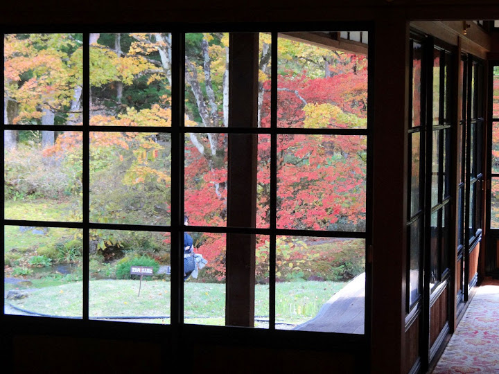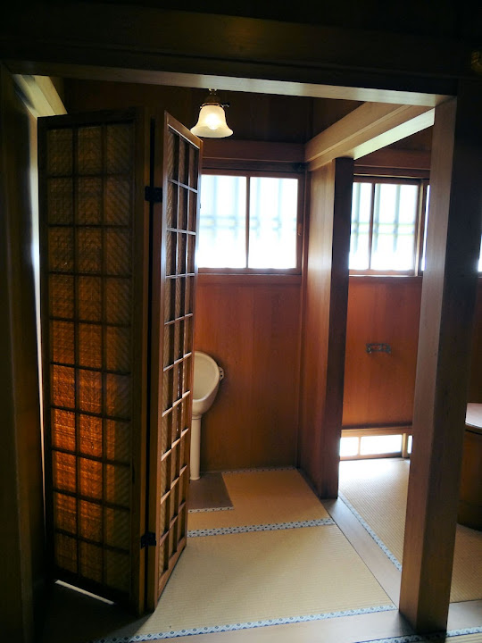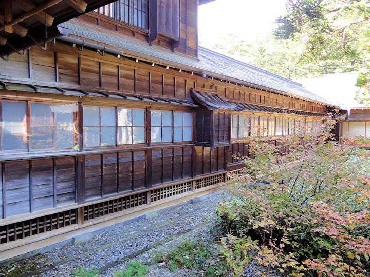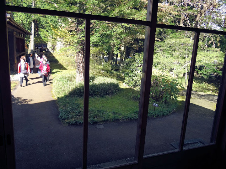 前文說御用邸混合江戸、明治、大正等不同時代的建築風格,其實以我這般外行,都是百年以上古董,看不出有何區別。反正隨著「順路」指標一路走到底,隨手濫拍。倒是幅員廣大,據說有106間房,佔記念公園現有一萬兩千坪面積約三分之一。其中26間供皇室起居,其餘則供侍從僕役居住,可見陣容龐大。