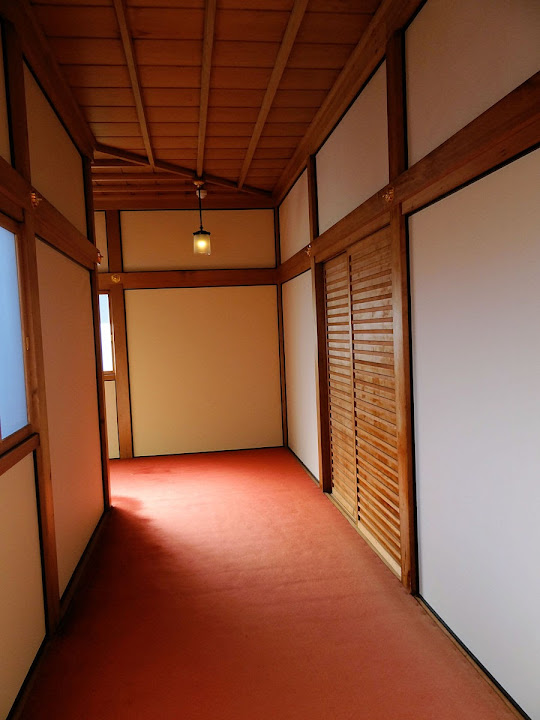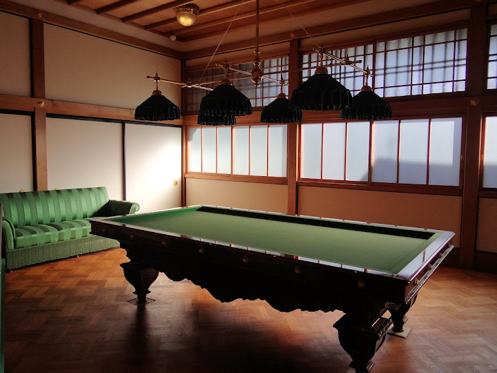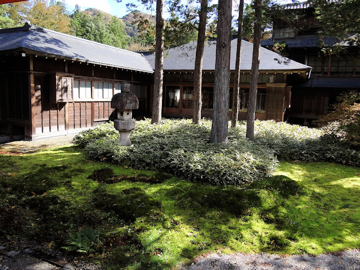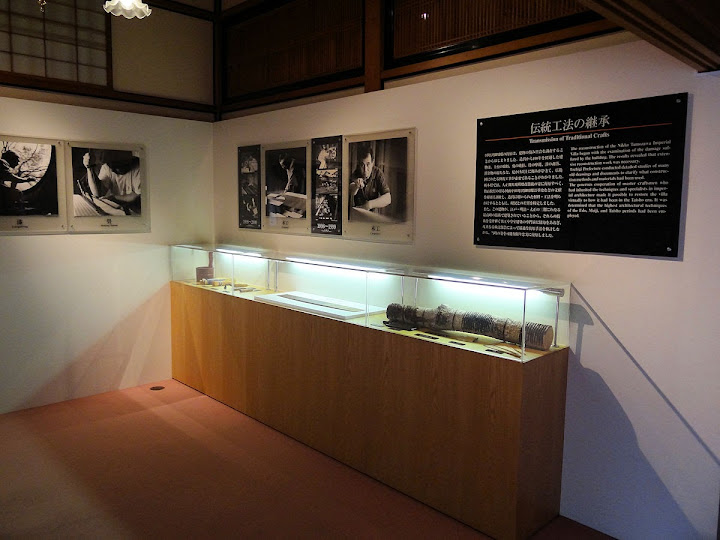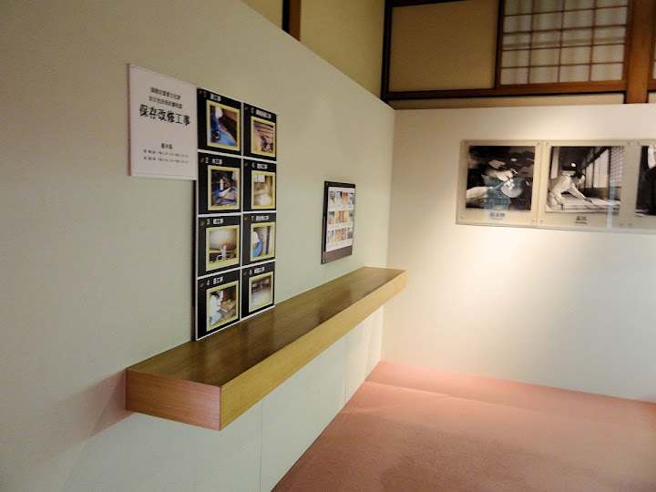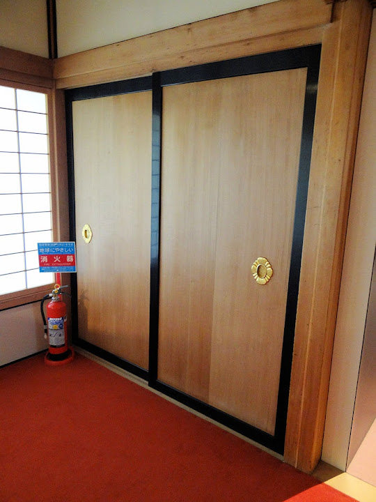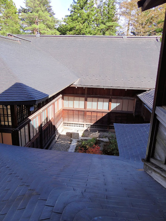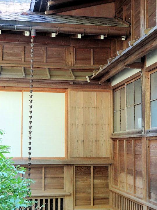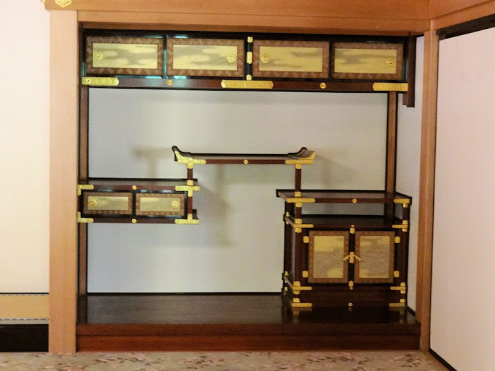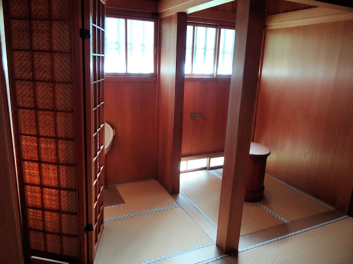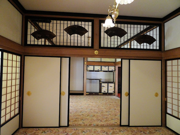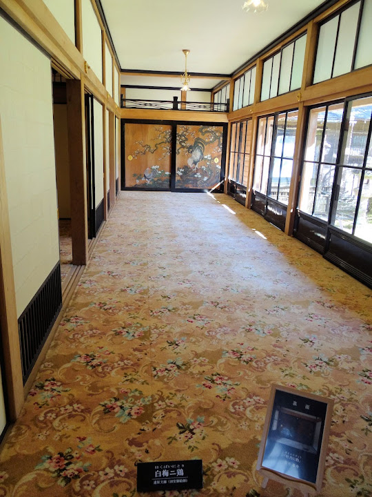 前文說御用邸混合江戸、明治、大正等不同時代的建築風格,其實以我這般外行,都是百年以上古董,看不出有何區別。反正隨著「順路」指標一路走到底,隨手濫拍。倒是幅員廣大,據說有106間房,佔記念公園現有一萬兩千坪面積約三分之一。其中26間供皇室起居,其餘則供侍從僕役居住,可見陣容龐大。