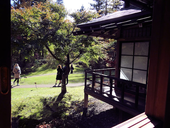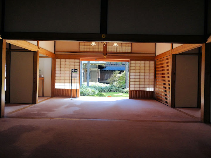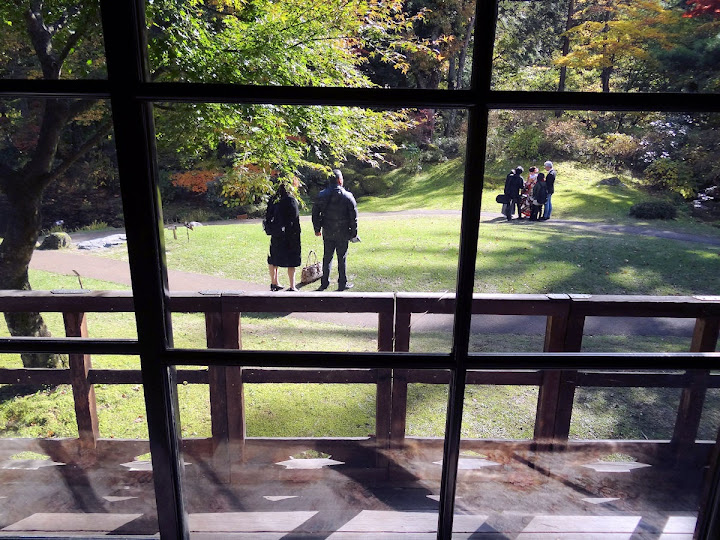 公園免費參觀,但宅邸要收門票,約五百圓的銅板價(是滴,日圓五百是銅板),還要脫鞋,背包放置物櫃。敝開麻煩不說,接待人員不論歐吉桑歐巴桑都十分親切有禮,能講英語。拍照不得使用閃光燈、腳架,規矩要有;後者當然,也要放置物櫃。好在當時天色正光,沒用那些勞什子,也不見黯淡。