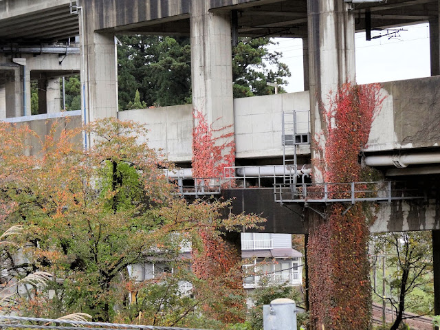 出站之前,倒是有件趣事,值得記下供後來者參考。大概來得太早,而健行活動已近尾聲,報名者不多。官網指示到站內旅客服務中心報到,領取地圖等相關資料及折價券。不料服務中心大門深鎖,不得其門而入,無奈往JR售票口詢問,答覆是到服務中心隔壁咖啡廳門口小桌上找服務人員。結果咖啡廳門口一排小桌,卻沒半個人。再問吧台小帥哥,他支吾兩聲,大概正考慮怎麼回覆,剛好門口進來一位抱著資料的妹妹,馬上笑逐顏開,說「就是她!就是她!」這妹妹大概也沒料到一早上工就有生意,招呼我到旁邊坐下,才慢條斯理完成報到手續。偶然瞥見名單,人數果然不多,小貓兩三隻,難怪一副打算休假的樣子。其實事前做了功課,靠估狗地圖也找得到路,只是想拿紀念品而已。不過午後回到車站,景況大不相同,全醒了,萬頭鑽動。所以我大概真的來早了吧!