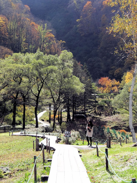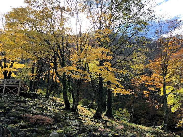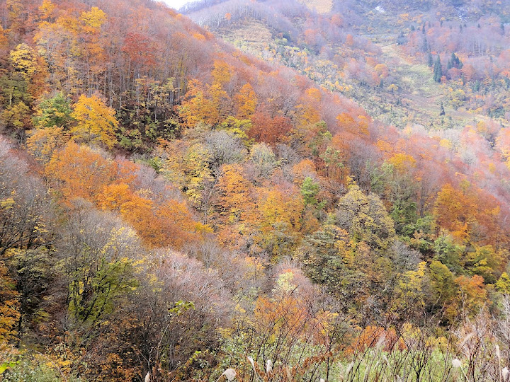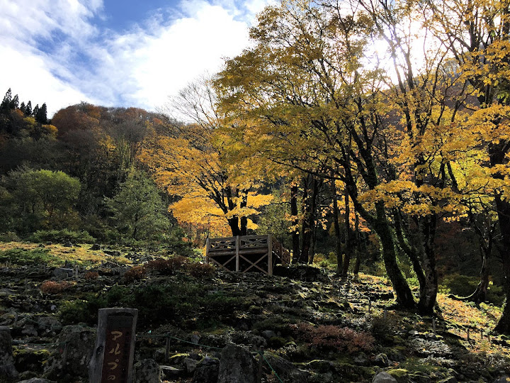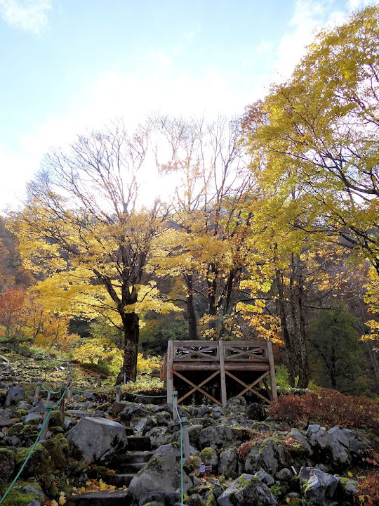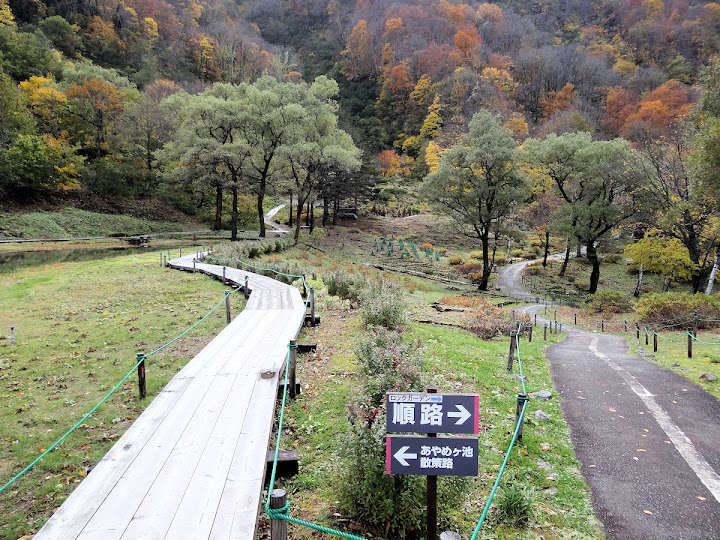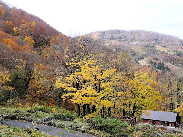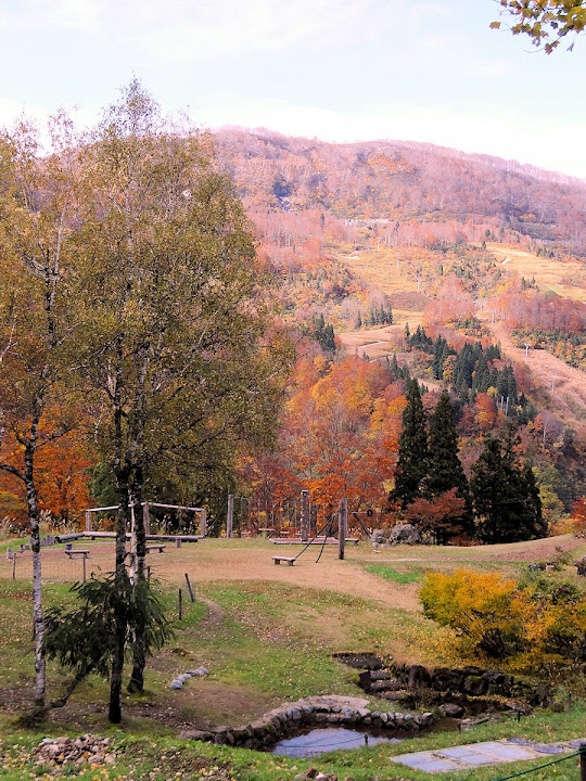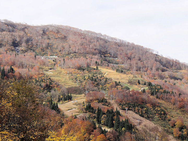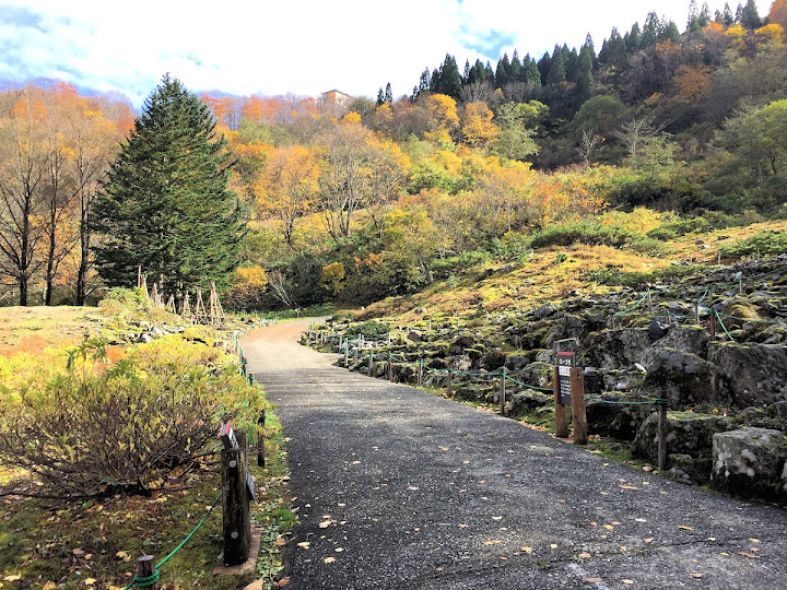 大概為了塑造歐風形象,湯澤高原上若干設施都以阿爾卑斯山事物命名,如餐廳叫做小白花(Edelweiss)。山坳裡的高山植物園,則乾脆叫做阿爾普之鄉(Alp,少個s)。春夏以百花齊放著稱,到了秋末,便頗為寂蓼了。紅葉季也剛好錯過,只能說,確實不是最佳到訪時節。然而2500米海拔空氣清新涼風習習,當做健行,依然十分愜意。