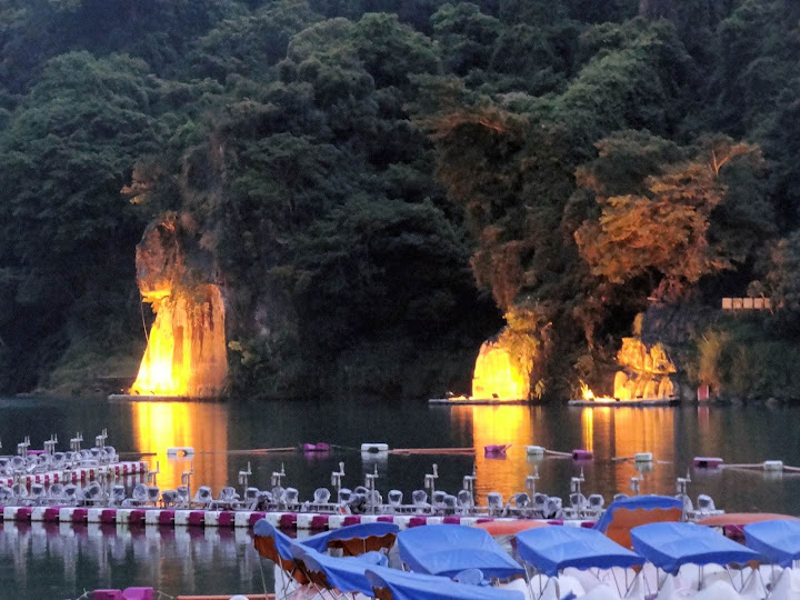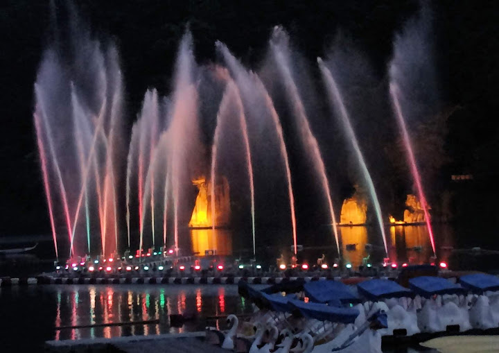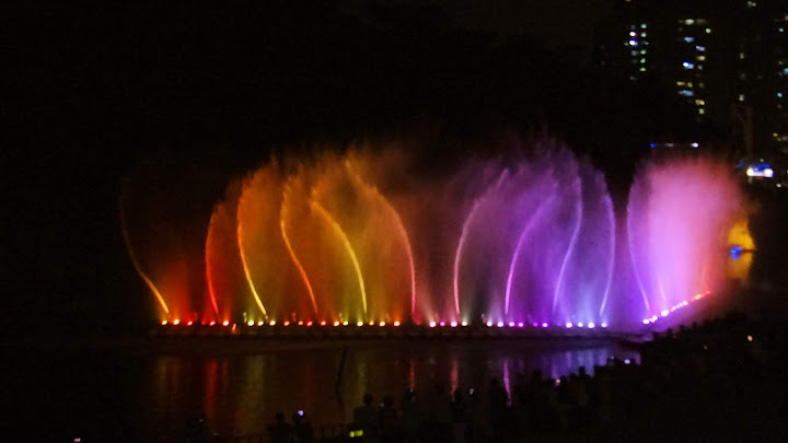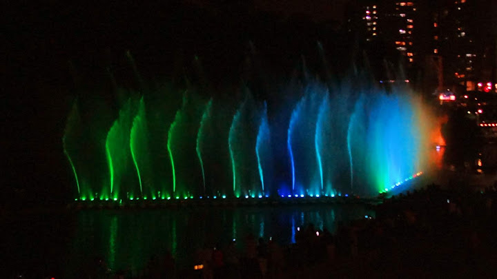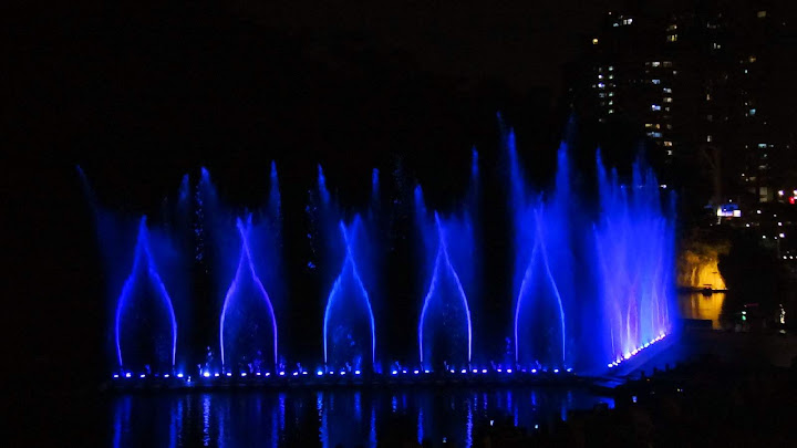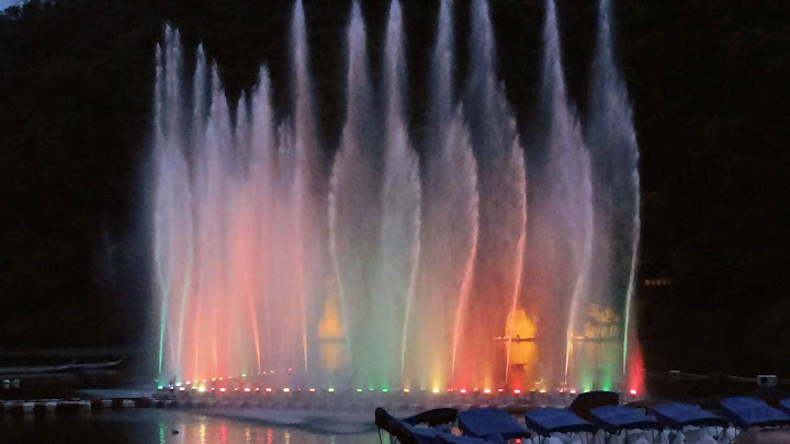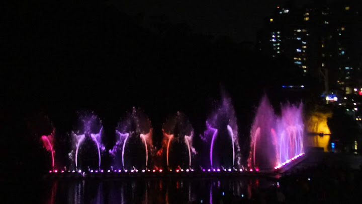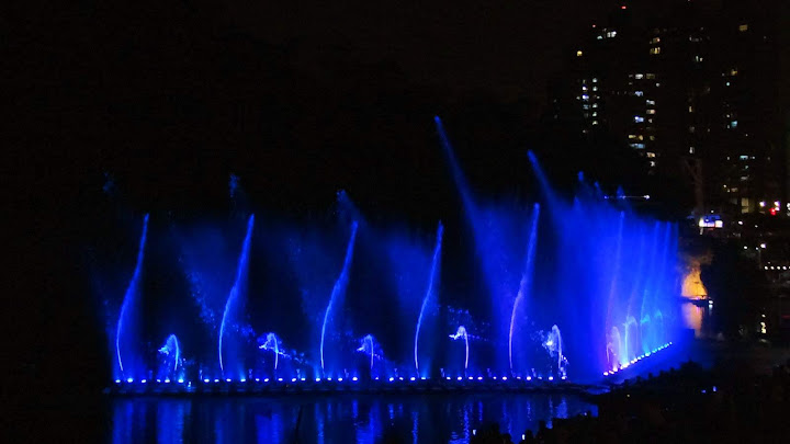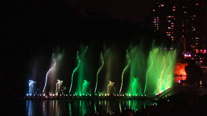 因為臨時起意,時間估得不太準,經過碧潭吊橋不遠,半小時整點的節目就開始了。好在手攜長砲,距離不是問題,只配樂比較小聲而已。第二段坐到看台上,限於視角,未見高明,又懶於等下一場,也許明年再來調整較佳角度。倒是樂音清楚了,被 FB 判定侵權而消音,反而聽不到。YouTube 暫時沒問題,不知能撐多久,請把握機會。