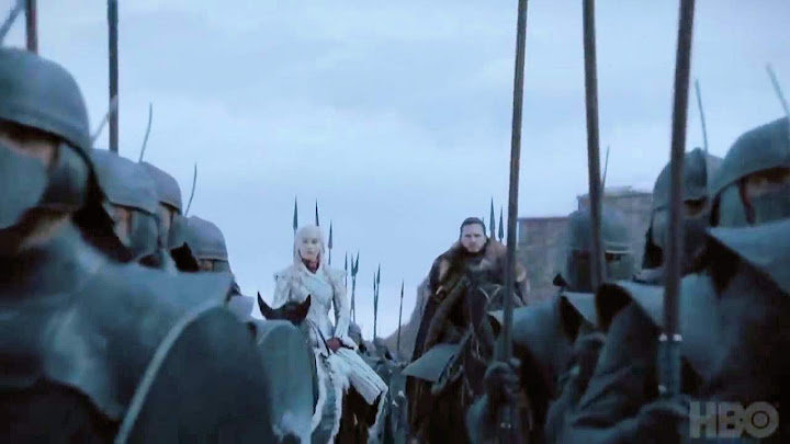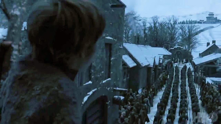 唯一稱得上悲天憫人的,大約只有瓊雪諾的驚天一刺。他應該不是受知情人等警告小命不保而先下手為強,否則不會束手就擒,冒著被無垢者千穿百孔,多斯洛克人取首級當馬球踢的風險,最後還落得發配北疆。對整部戲來說,大概是成本最低(無論對劇中世界或片老闆)的收尾方式,儘管著實沒勁。以看戲的立場,當然希望有更戲劇性的結局,最好多打幾仗。或許正因如此,第五集鏡頭才淨在遭火龍肆虐的小老百姓身上打轉,讓觀眾生點同情心罷。