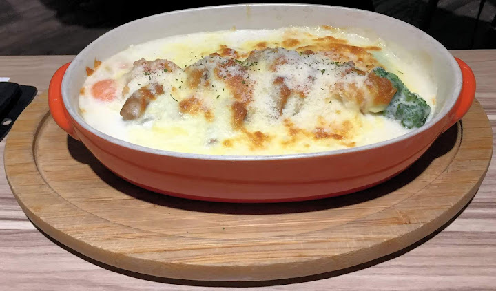 突然發現櫃子裡還有幾張半年多以前吃的簡餐,擺到忘了。那天不知怎地跑到台北站前地下街,臨時起意吃點東西,小孩左右張望選了這家,大概衝著櫻桃小丸子的「丸」字吧!餐廳名稱有濃濃東洋味兒,那個「洋」字按日人習慣是指西洋,菜單包括義大利麵、焗飯、蛋包飯等,大抵是和式西餐。大人小孩各憑所好點餐,結果竟然大同小異,留存證物因而變化不大。