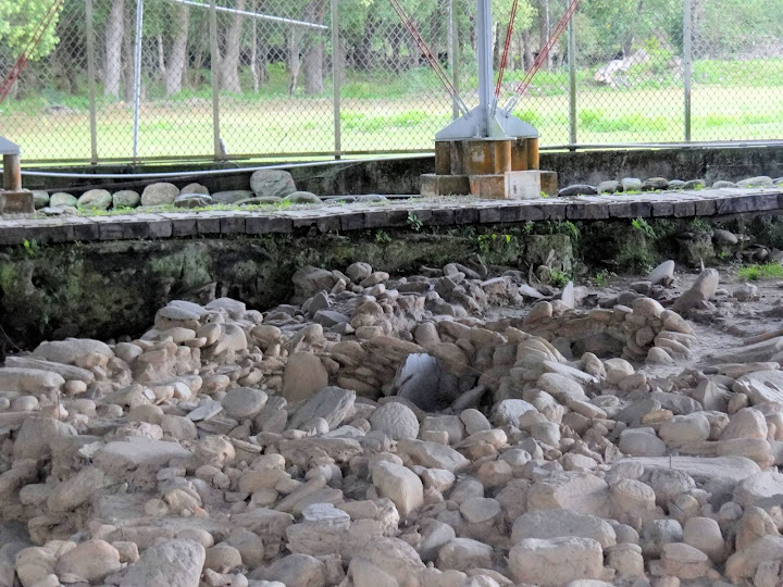由台東新站,出站右轉,遇大路再右轉,過下圖鐵道下方涵洞,即可望見篇首台階,往上走便是公園入口。首先會進入棚架遮蔽的考古現場,介紹遺跡及發掘過程。另有室內展覽館,因時間有限,很快就關門,也就沒有進去,只在戶外繞上一圈,沒找到當年兒子爬上爬下的地方,便回家去也。