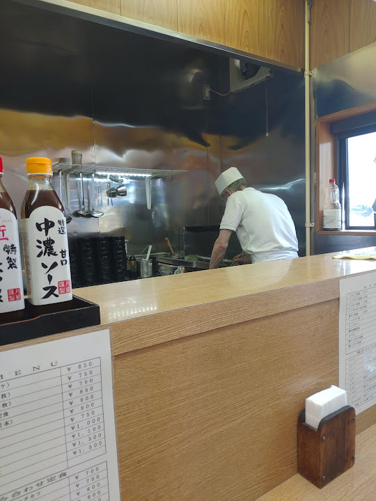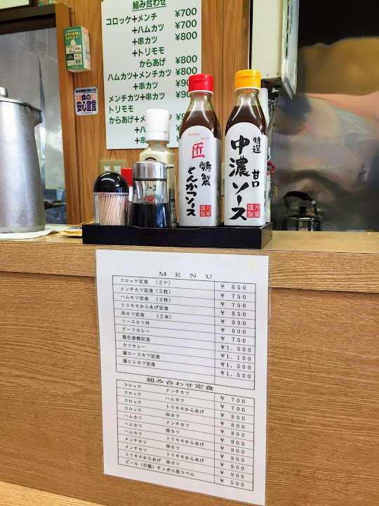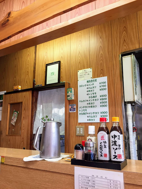 日光三天兩夜,除了全家、超市,也吃了幾家當地餐廳。其中淺井精肉店在網上赫赫有名,屬於排隊名店。這天安排搭中禪寺湖遊船繞行一週之後,上碼頭過馬路便是這家著名小店,也接近開門時間,搶著去排在第二位,第一輪就座。