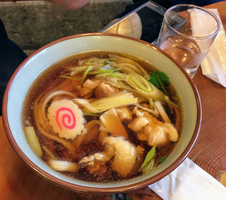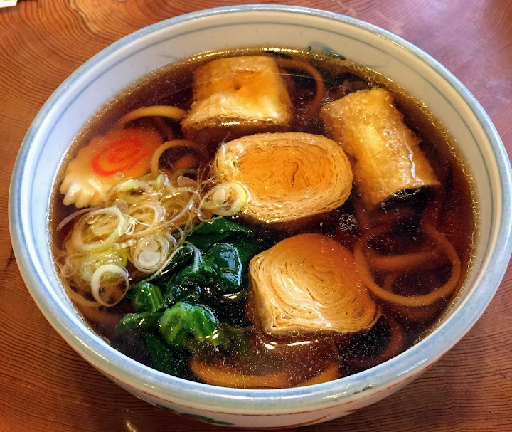 火車站到神橋間的119號道路兩旁有許多餐廳,這家「魚要」是黑山旅館推薦的,搭巴士兩三站才到,賣的主要是名產湯波麵。湯波便是豆皮,據說當地所產滑順細嫩,頗受歡迎。麵分烏龍及拉麵,各取所好。