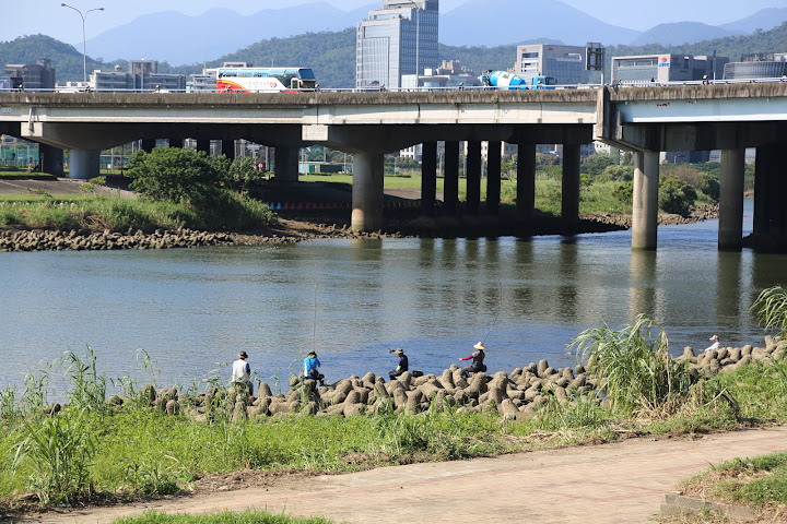 不多時走到花海東側,又見一道翻牆梯。只是方才熱身,就這麼打道回府心有不甘,乾脆沿河岸溯行,由民權大橋過河到市區,慢慢散步回家。