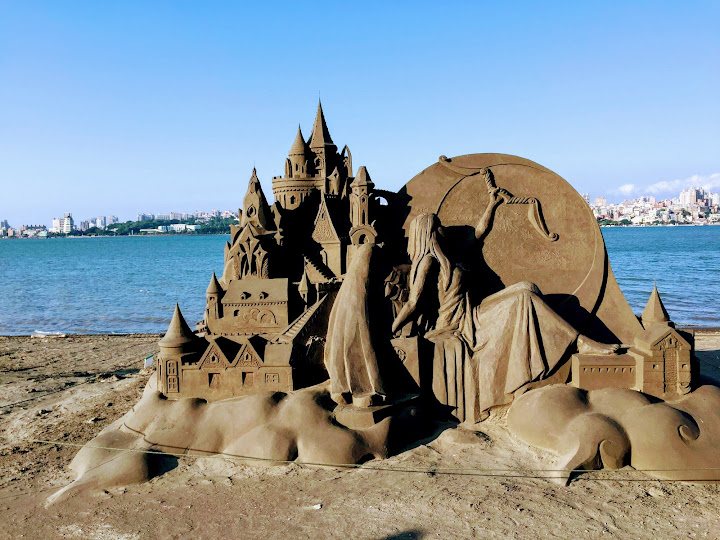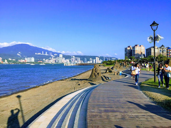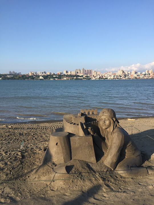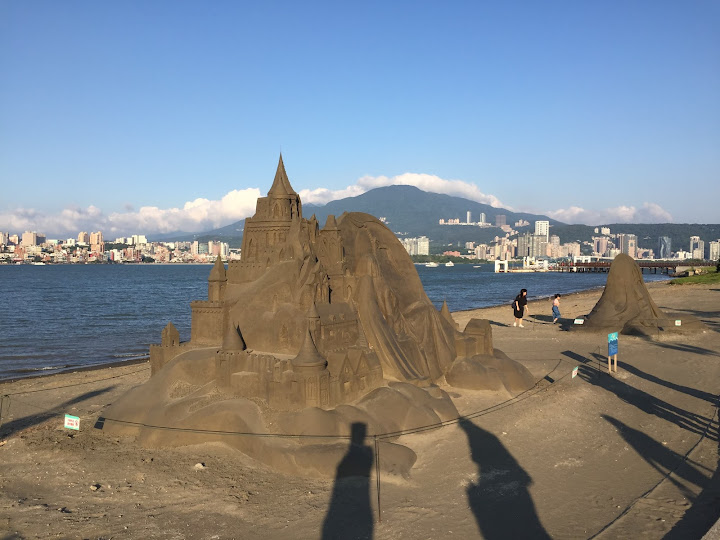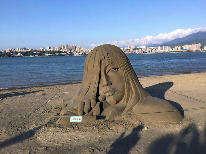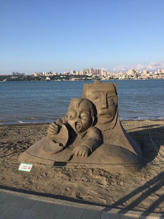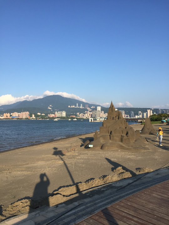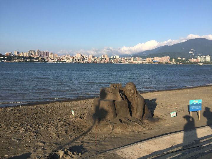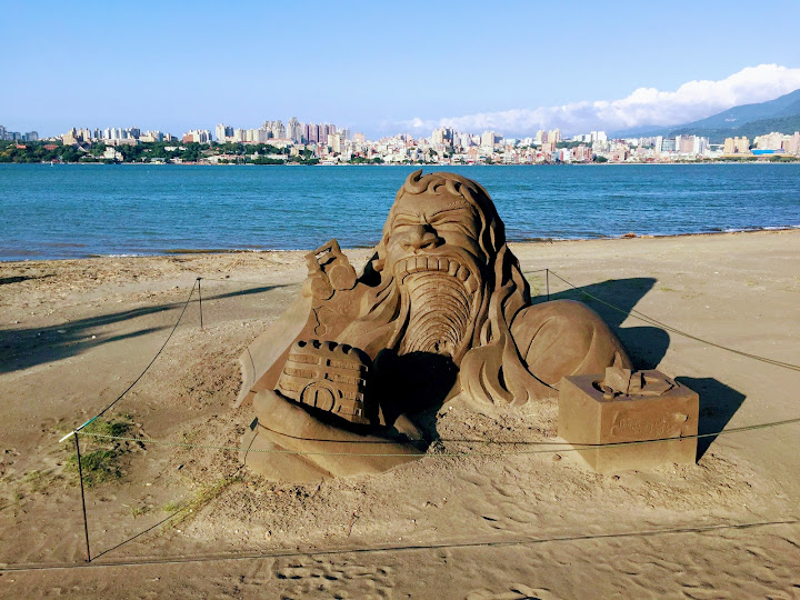 前陣子聽說八里有個沙雕展,想來湊個熱鬧。不料果然熱鬧,淡水老街渡船頭大排長龍,不耐久候,鎩羽而歸。這天趁大夥兒補班捲土重來,再次來到渡船頭,隨到隨上,不亦快哉。當然,展期已近尾聲,人潮不再。反正輕鬆渡河,再走個幾百公尺,便是左岸公園。