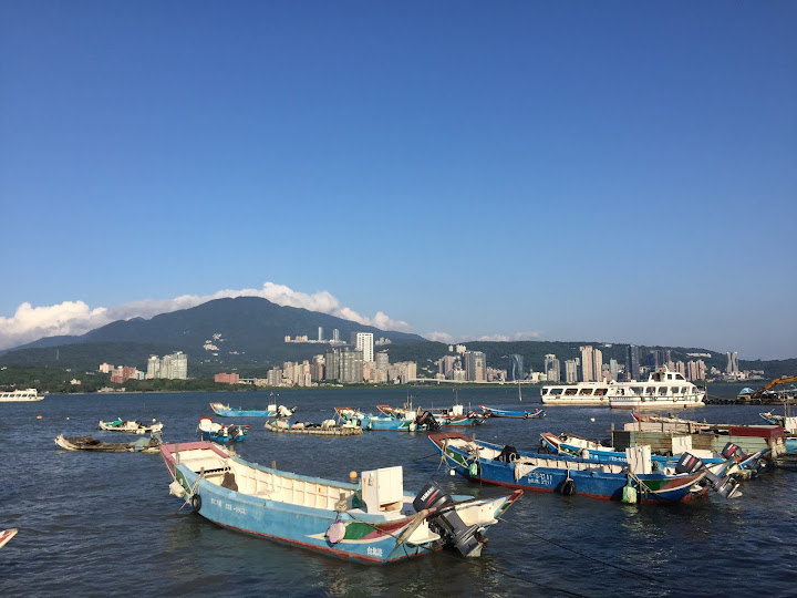 難得來到八里,隔水遙望淡水竹圍大屯山,別有一番風情