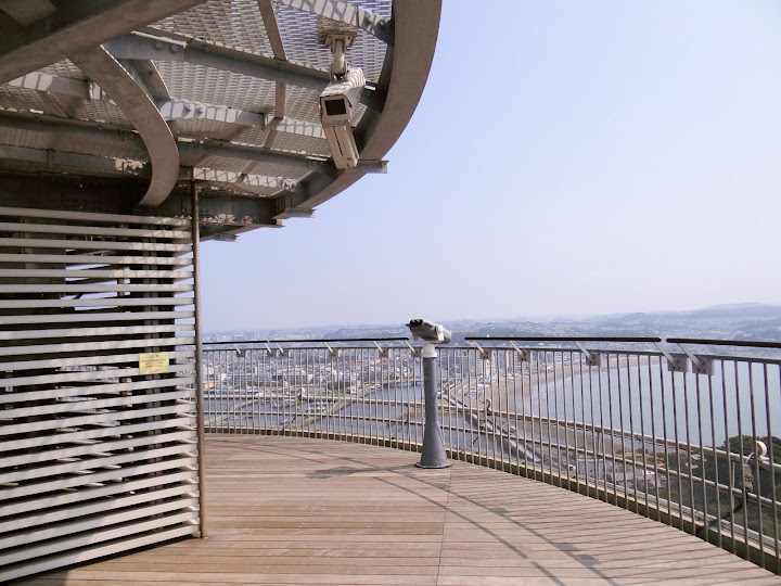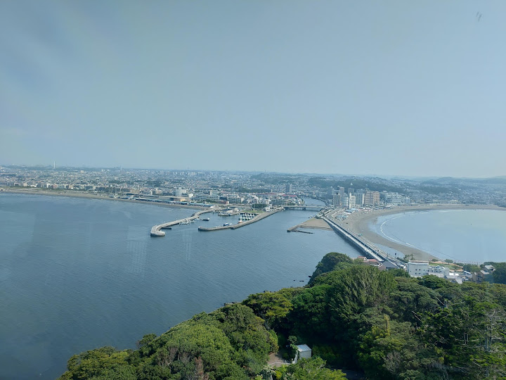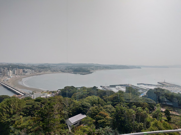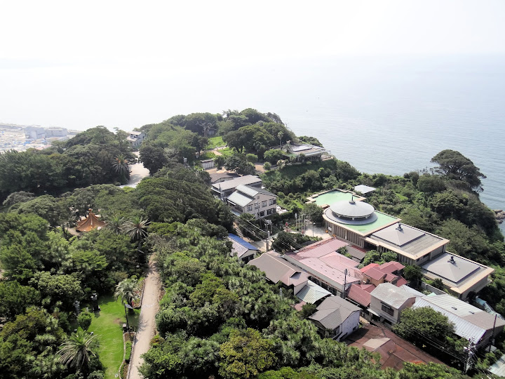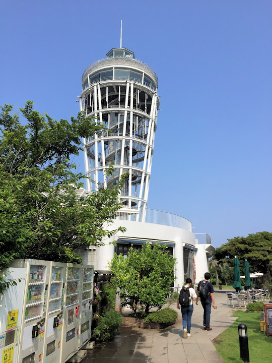 展望燈台在花園之中,高度近60米,海拔則近120米,2003年由舊燈塔改建,是俯瞰江之島乃至整個相模灣的絕佳位置。據說天氣好的時候,可遠眺富士山、橫濱地標塔,甚至東京晴空塔。不過要看老天心情,我們登頂時晴空萬里,可或許是因為霧霾,連富士山都看不到,別說什麼塔了。