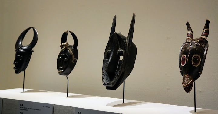 展出內容是來自五大洲,各式各樣的面具。有的用來演戲,有的用在施法驅魔辟邪,也有的純粹好玩,作為藝術品。可惜事出意外,趕著去吃砂鍋魚頭,疾疾如律令繞場一週,光拍下面具本身,解說統統略過。本以為官網會有註釋,不料只選了兩三件做代表。好吧,既是如此,只能看圖自行腦補啦!