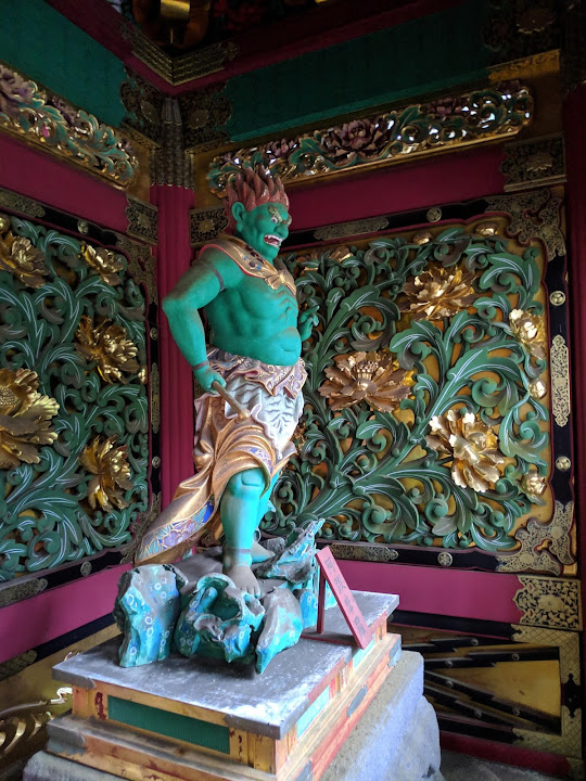 日光之旅其實還有三分之一尚未交待,只不過已經都在前兩次來訪中介紹,重複者多,有些不帶勁,擱到現在。轉念一想,差別也不算少,譬如大猷院的二天門,上次便在整修中,而輪王寺本堂,更是首次得以入內。更重要的,以前都在深秋楓紅季節,第一年甚至遇上初雪,這回則是仲夏滿山翠綠,光照片顏色就大不相同。所以後續幾篇,即令景點已經走過,圖片依然照貼,只是相關說明和故事,便大都省略不再重複。