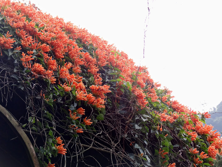 事實上,不管什麼疫情還是深山林內,都擋不住台灣人的熱情。幸虧第一,有交通管制,大老遠便開始限制流量;第二,為了讓兒子練習山路行車,由新店安坑轉110縣道,雖然蜿蜒曲折,但比起高速公路下三峽再上山,車流量真是天地之別。距行修宮約五百米岔路被要求改道,便在山路上跟著大夥兒停車,步行入宮。