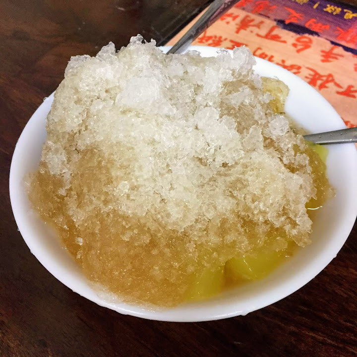 天熱想吃冰,對面就是老字號源記粉粿,可店裡少年郎說時候晚了,只出得兩碗粉粿,不得不分著吃。