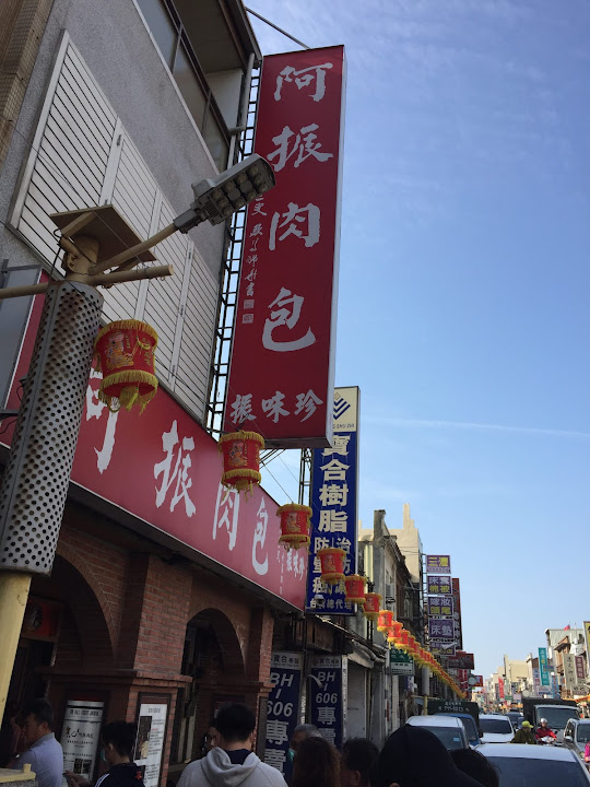 飯後到龍山寺蹓躂,回頭沿中山路往天后宮,路上經過阿振肉包,也是排隊名店。看隊伍不算太長,買些外帶,萬一路上耽擱,還可以當晚餐。