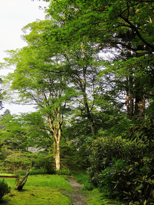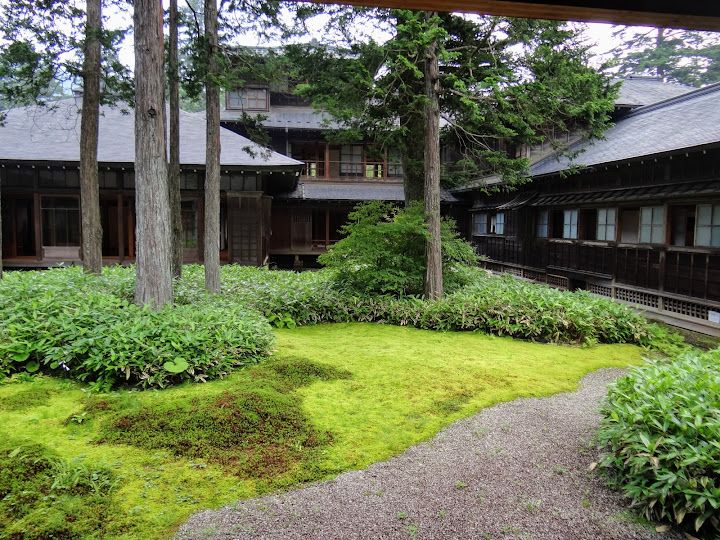 日光之旅的最後下午,在大雨中匆匆走過憾滿淵和日光植物園,發現時間還蠻充裕,可以再逛逛植物園隔壁的舊天皇別墅,也就是田母沢御用邸。此處也是舊地重遊,上次正逢樹木變妝五彩繽紛,今回則是仲夏綠意正濃。老實說,來自常綠寶島的我們,日本的夏天比較缺乏視覺差異,不像秋冬那般令人讚賞。不過反正來了,而且拍照接近零成本,依舊拍下一籮筐。