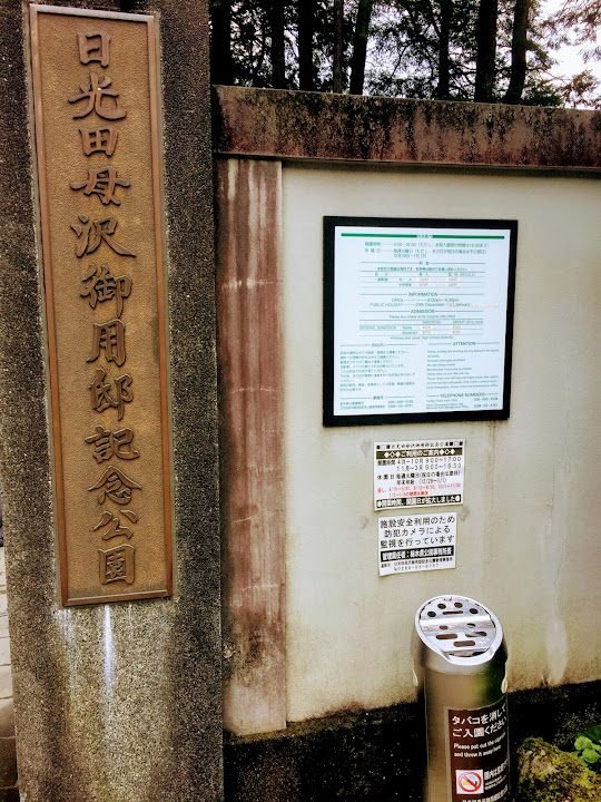 上圖是臨國道120號的入口,由日光植物園過來,會先經過這道門口。前次則是由正對御用邸通的大門進入,在公園中小走一段路才抵達宅邸本身。公園不收門票,但參觀宅邸和後院,則需要繳一筆小小費用。