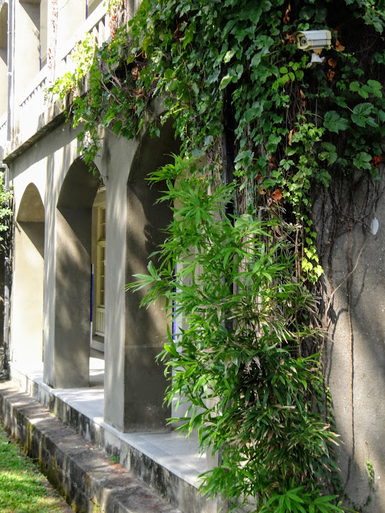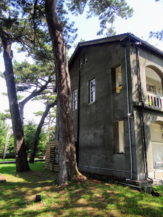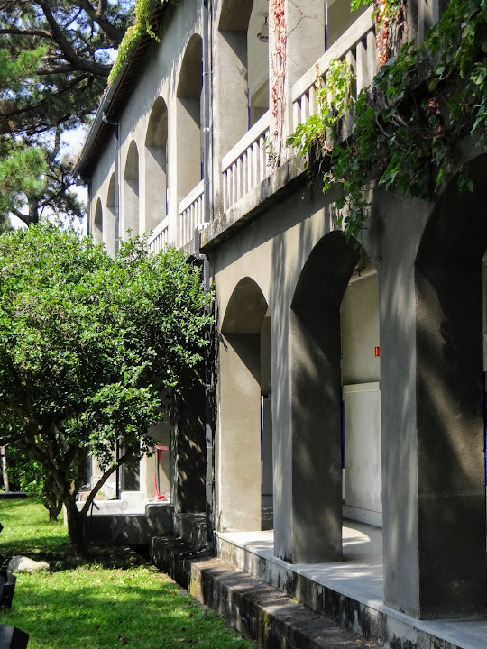 由煙波退房後,來到不遠處的松園別館參觀。此地位居美崙山,俯瞰花蓮港,具備制高優勢,因此日軍在二戰後期的1942年,於一片松林中闢建一棟洋房主樓,及若干附屬木造房舍,稱「花蓮港兵事部」,兼軍官休憩所。